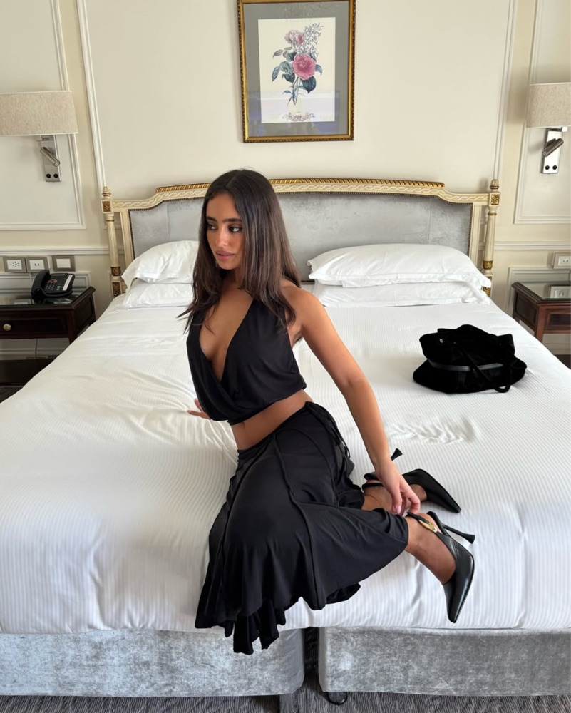 from the new collection xx. size xS top and xS skirt. Skirt is adjustable, could fit sizes xS-M. Super comfortable and chic material, black in color and halter open back . So obsessed with this set itβs not even funny