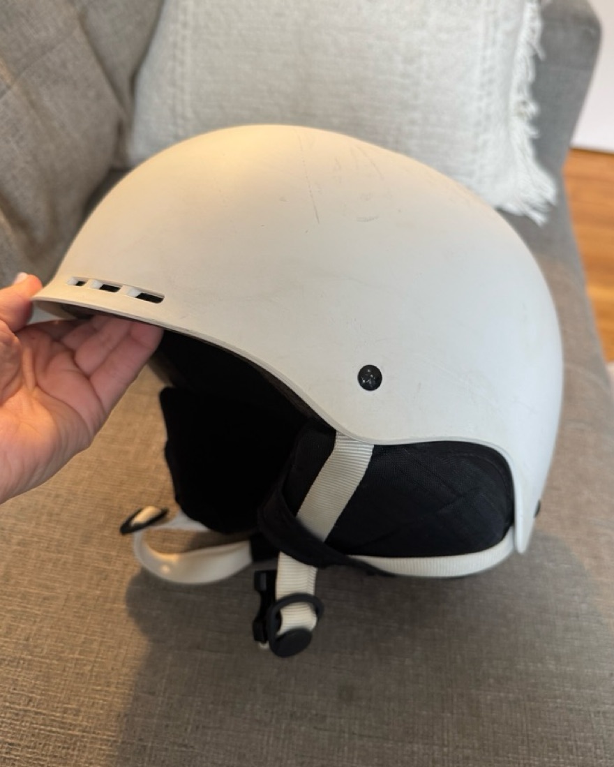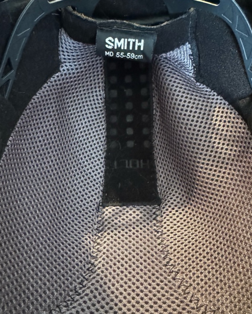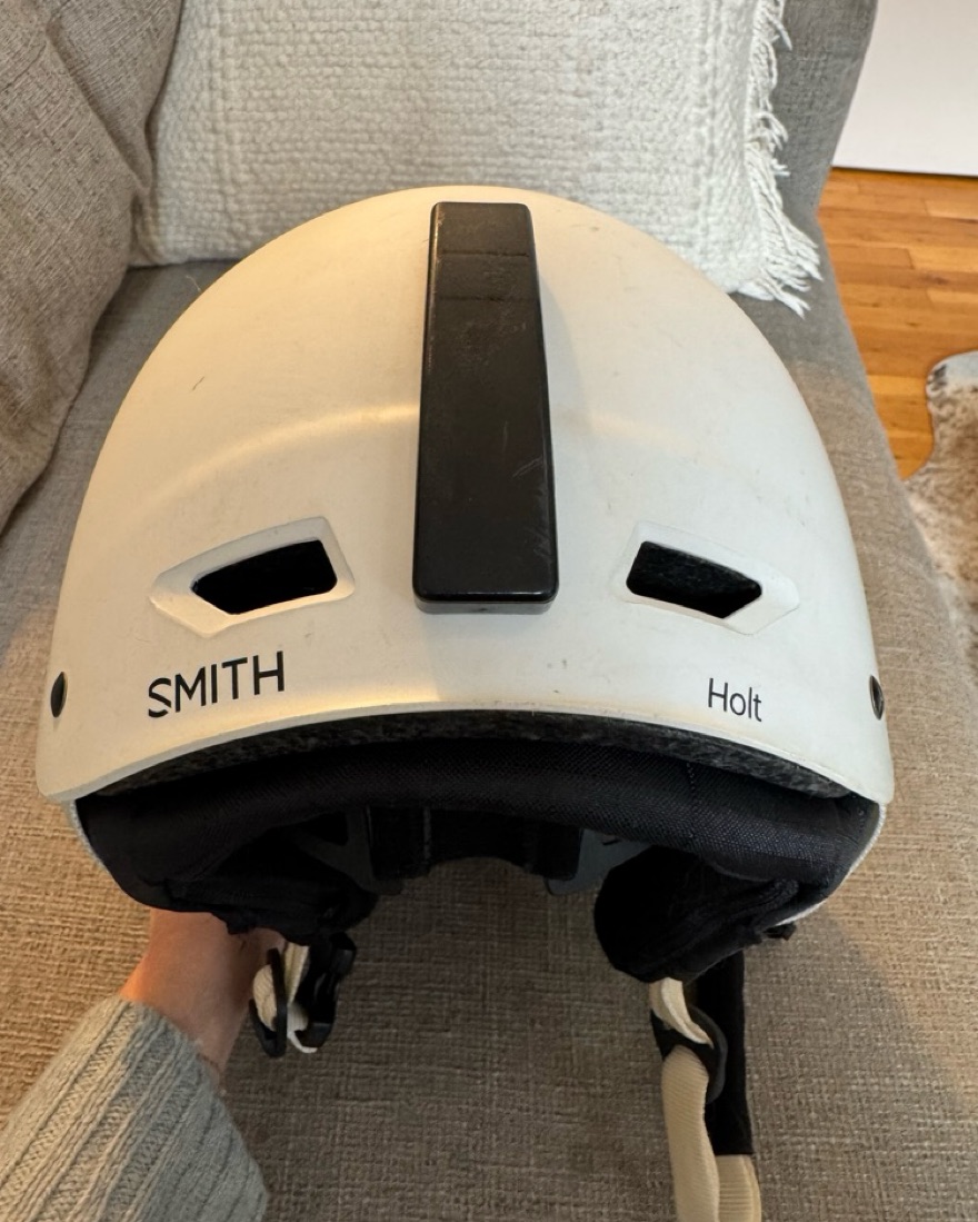 Size medium ski helmet made by world renowned ski brand, SMITH. Size medium with adjustable chin straps, ventilation on top and clip for ski goggles.