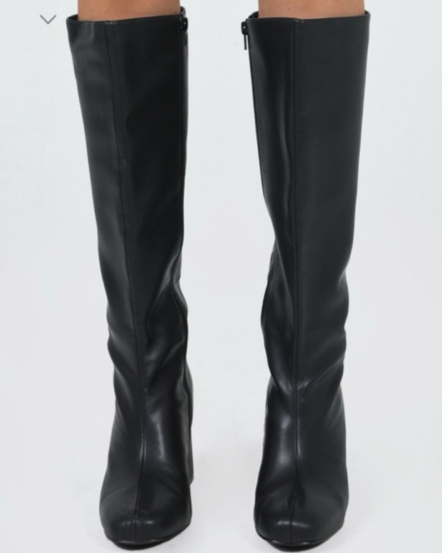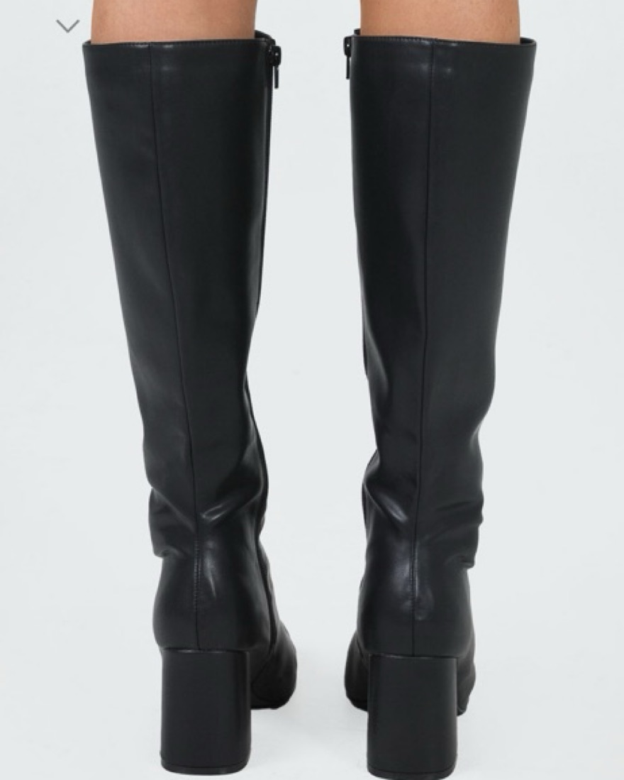 Worn once Knee-high boots Princess Polly Lower Impact Upper, lining & insole: 100% water-based PU Outsole: 100% rubber Faux leather material Zip fastening at side Rounded toe Padded footbed Block heel Heel height: 8cm / 3.1in