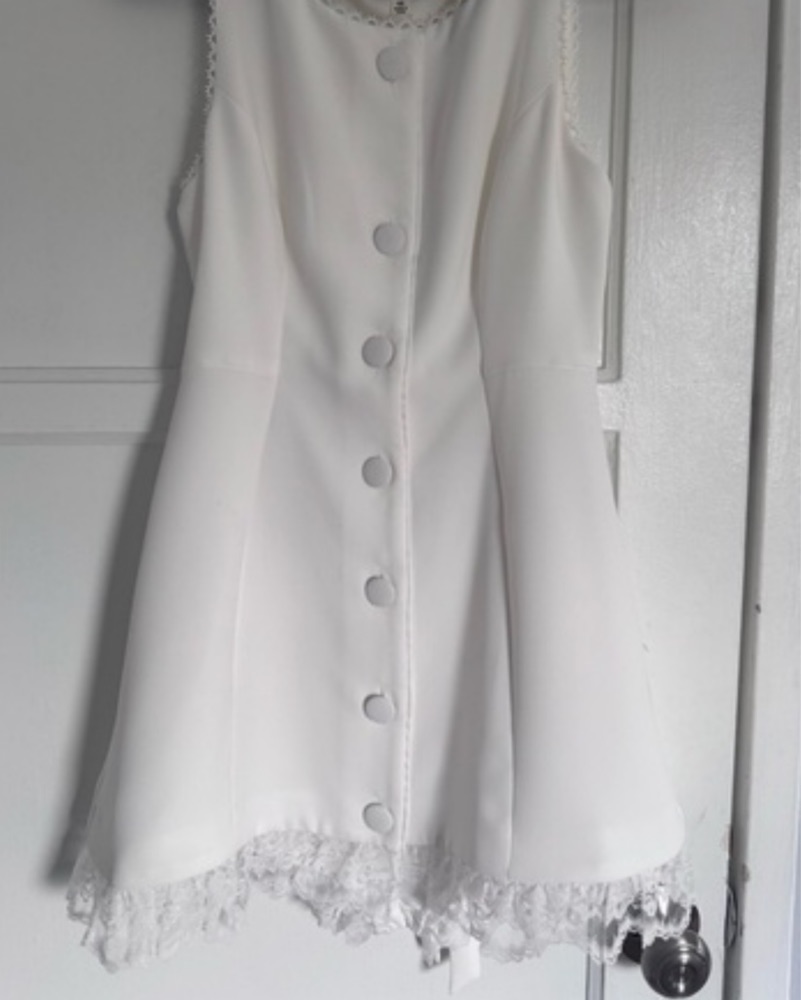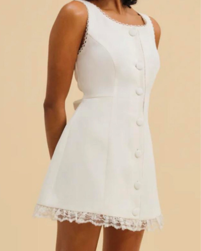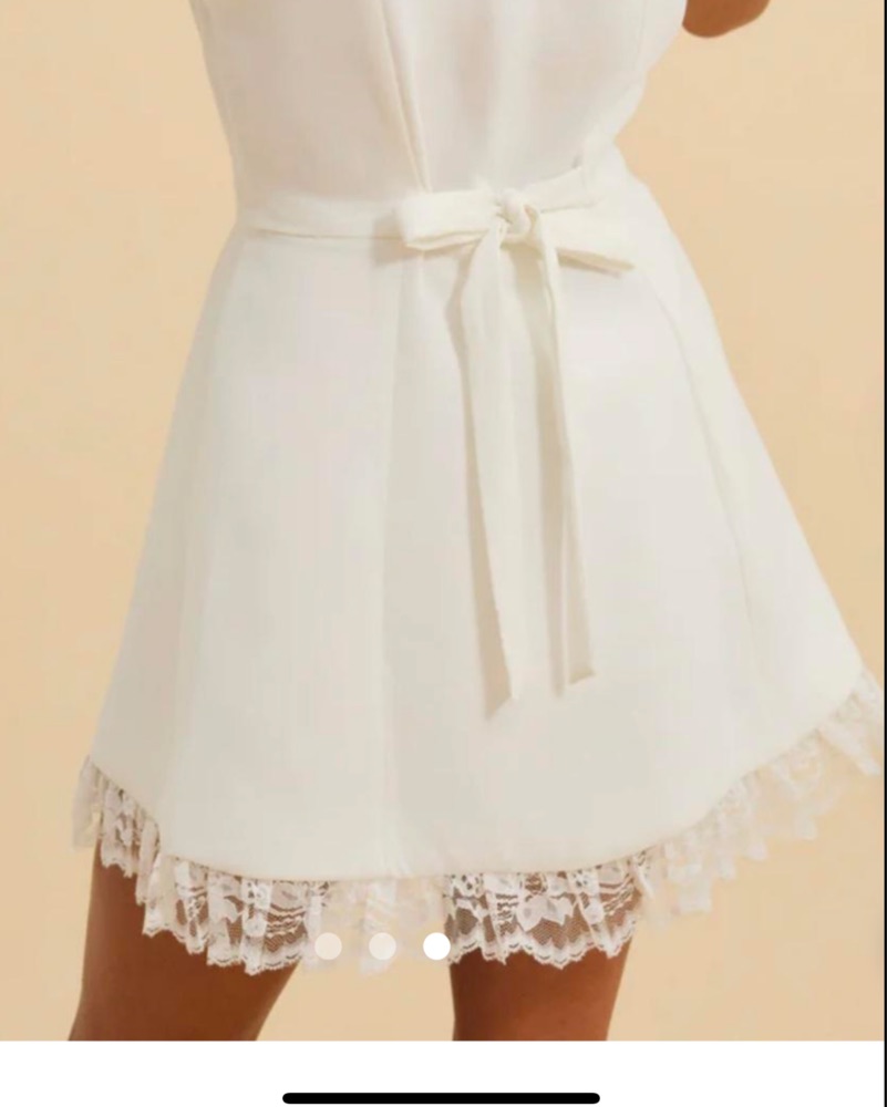 This charming mini dress is perfect for a romantic date night or a garden party. The classic white color and feminine lace details create a timeless, elegant look. Size XS