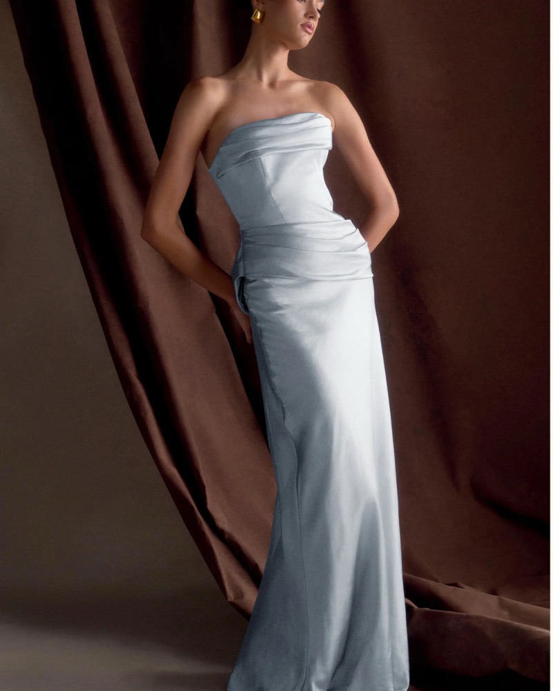 Meshski Strapless Satin Dress by Meshki - Pickle