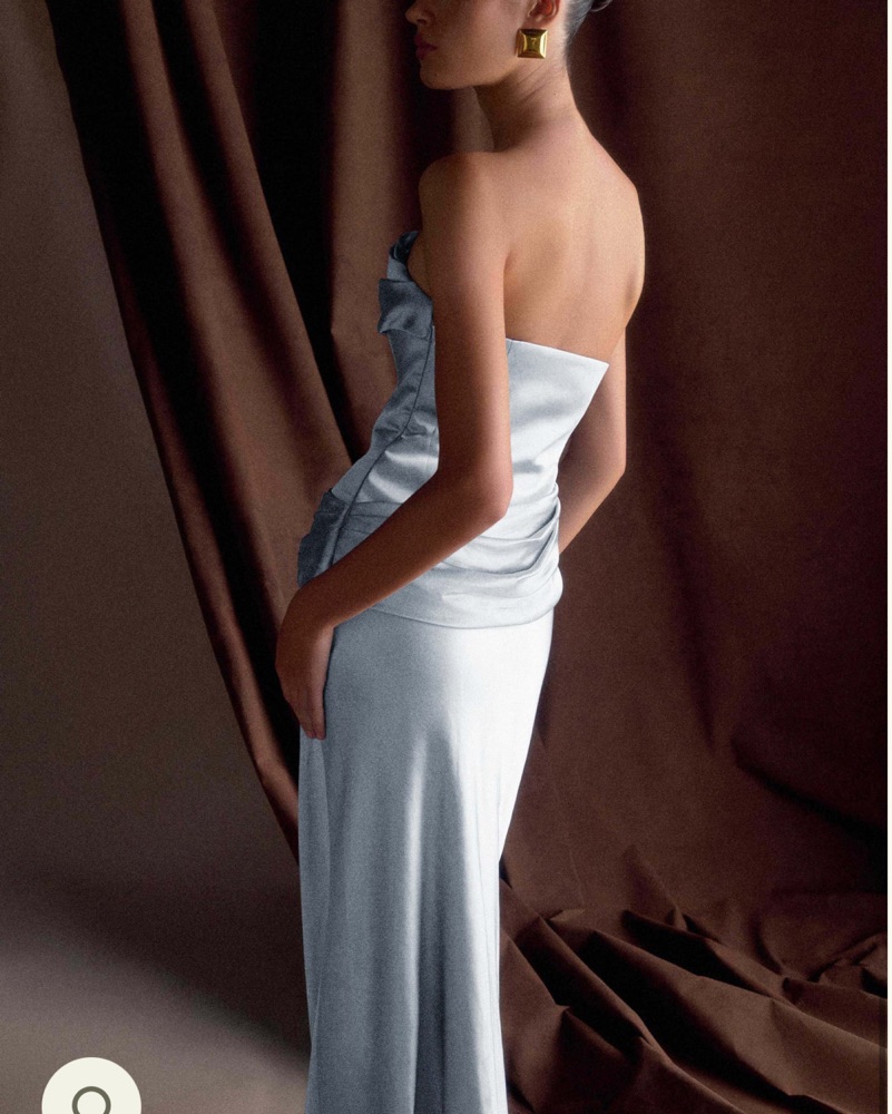 Beautiful steel blue dress perfect for bridesmaid or wedding guest! Never worn and no alterations!