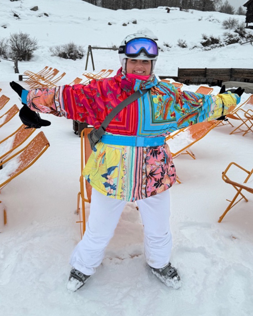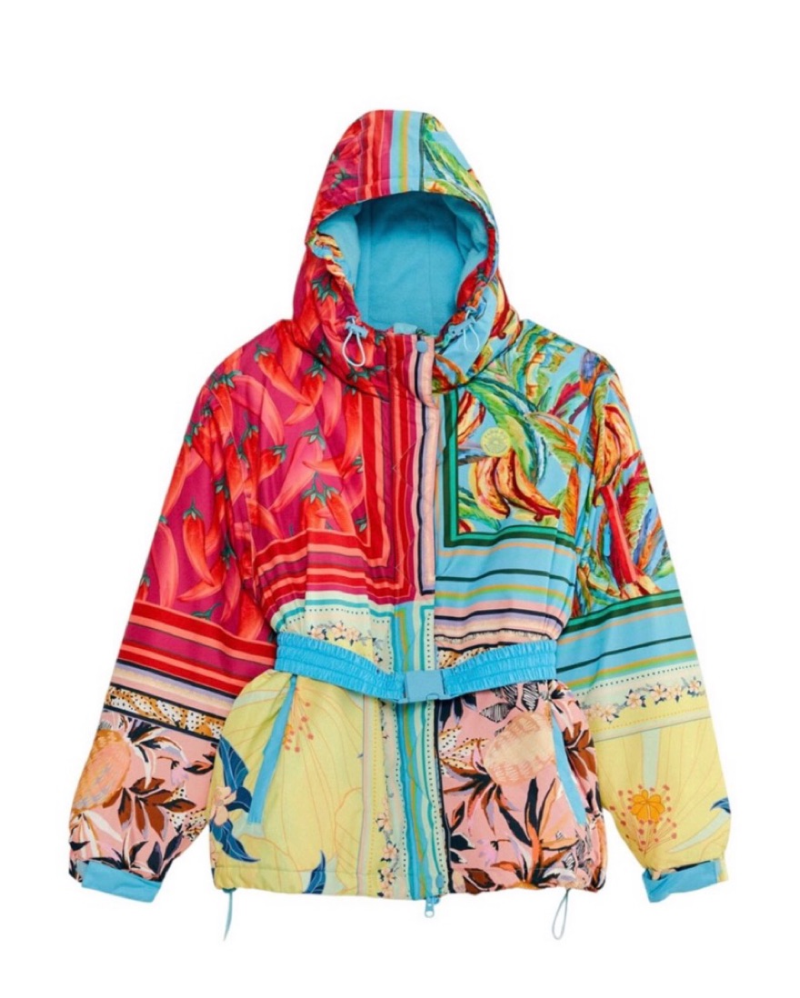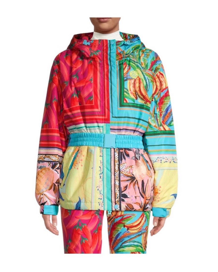 Farm Rio Ski Jacket. Very warm. Has a pocket on arm for lift ticket, as well as two pockets outside and a pocket on the insider. Belt is detachable. Absolutely love!!!