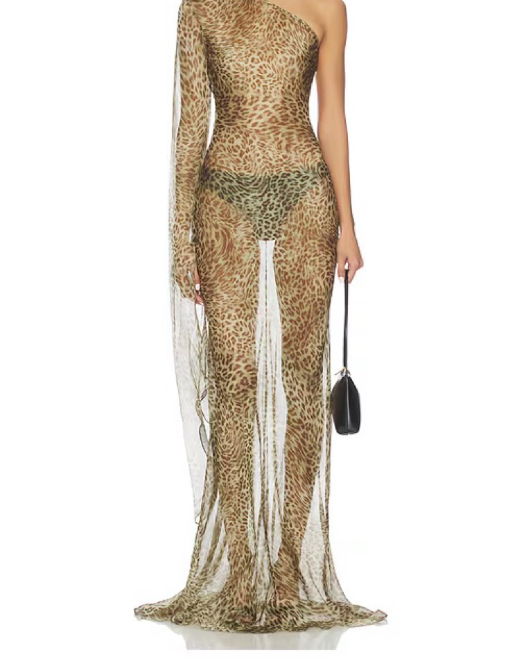 Cha the label one shoulder leopard maxi by Cha the label - Pickle
