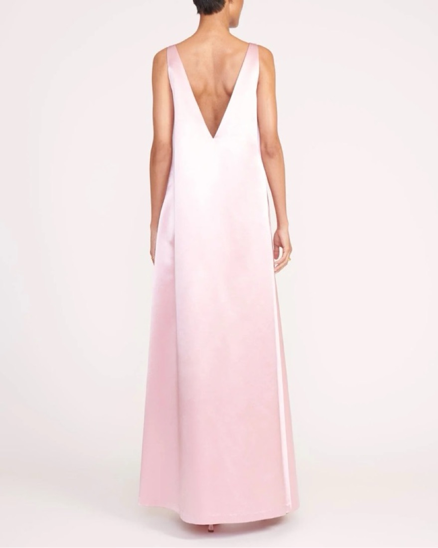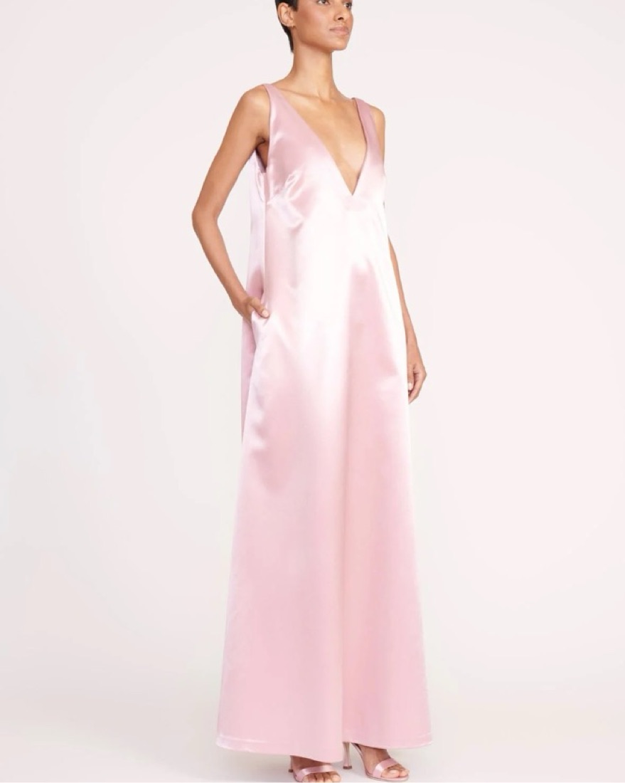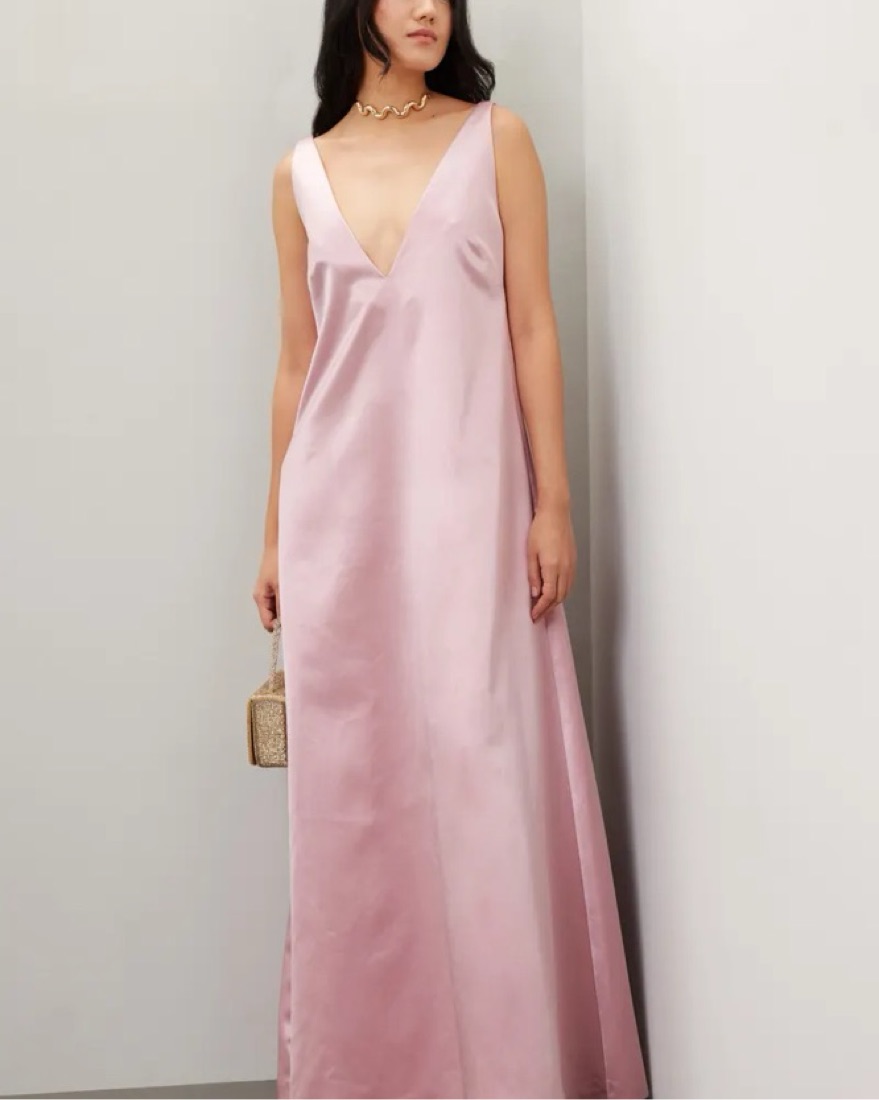Perfect black tie wedding guest or pink bridesmaid dress | black tie, wedding, gown, pink, shift dress, trapeze dress, dress with pockets, long dress, low back dress