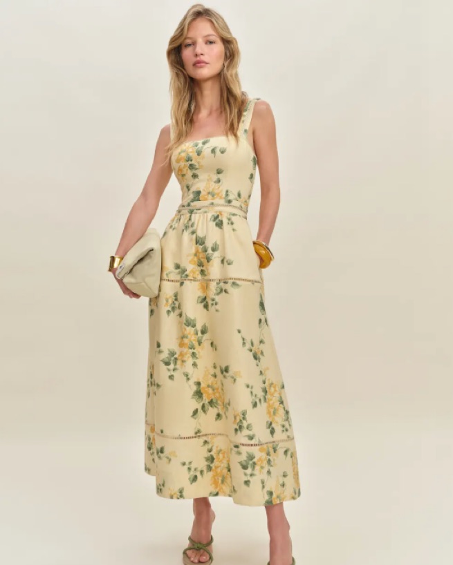 Gorgeous yellow floral dress from reformation- perfect for a wedding or a cocktail hour