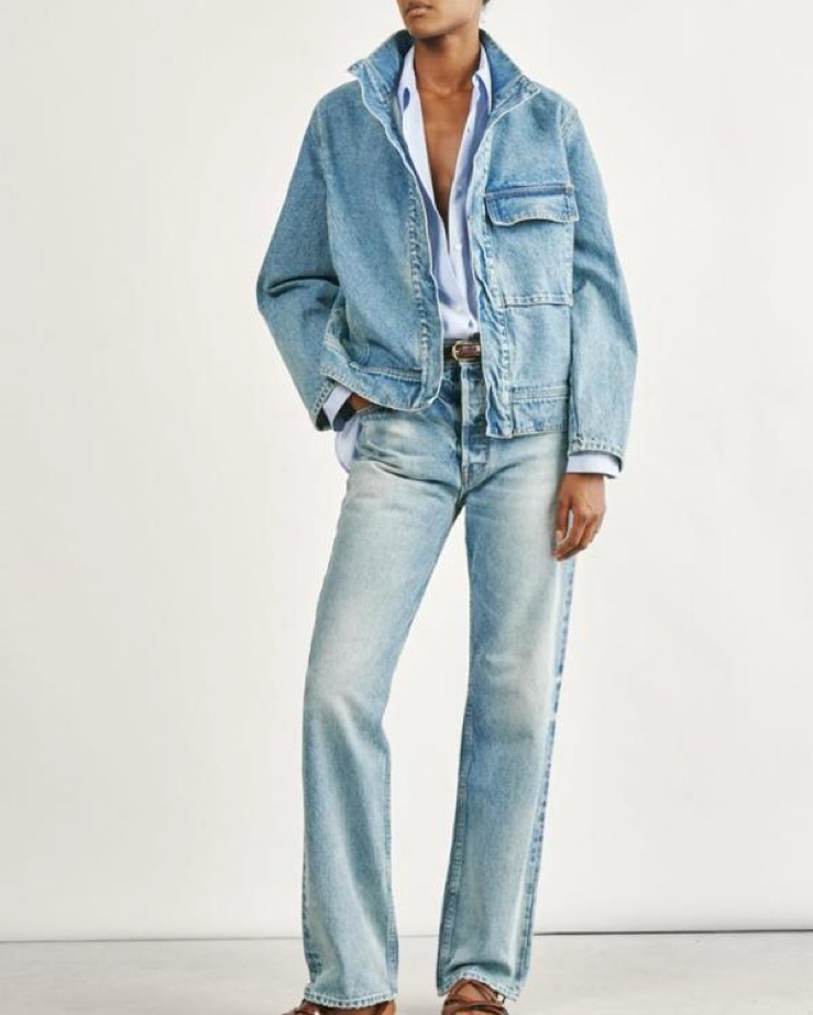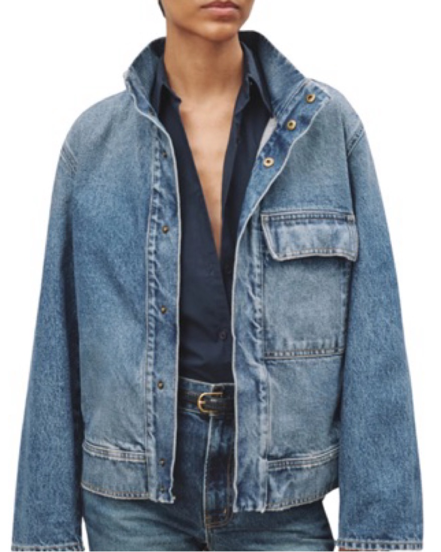 This pure cotton jacket is crafted in the U.S.A. from premium non-stretch Japanese crosshatch denim! Featuring a boxy, relaxed fit, a snap font closure, and chest and welt pockets for a versatile style that elevates any look from matching denim bottoms to dresses.