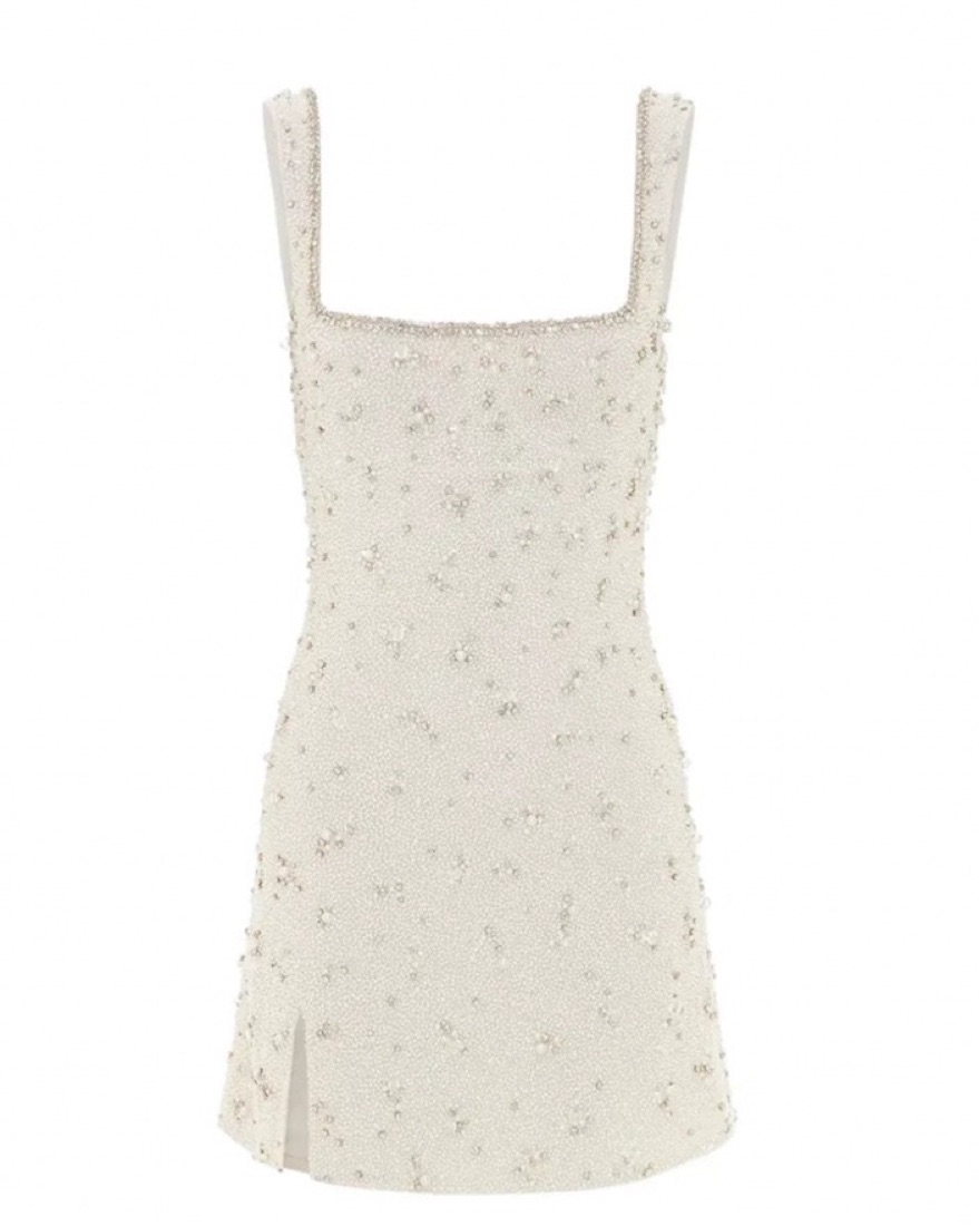 White Clio Peppiatt beaded bridal dress size S. Clio recommends this for a size 2 and sizing up if you are between sizes, but it does have some stretch to work with your batural curves. I also have a size S listed of the same dress! 🤍perfect for a second look, bachelorette, or even graduation!