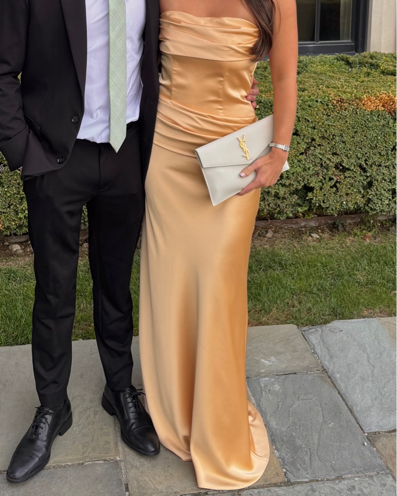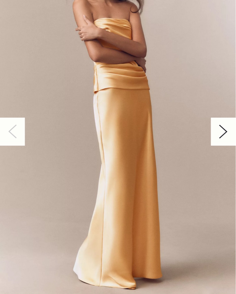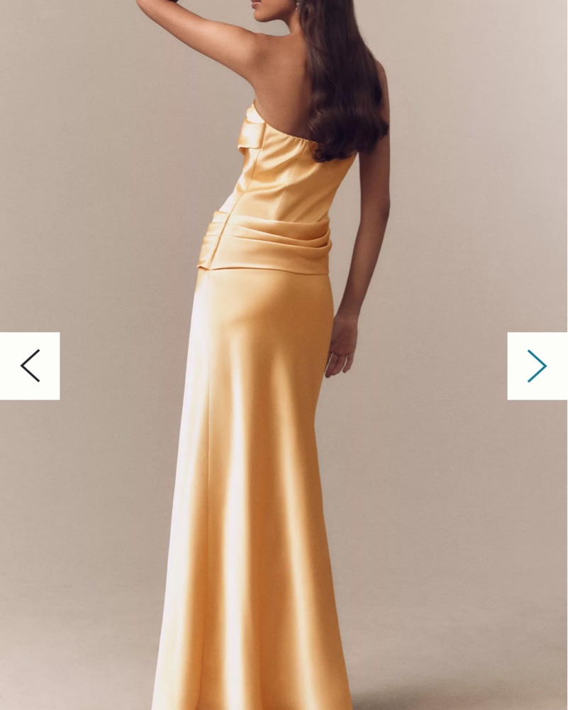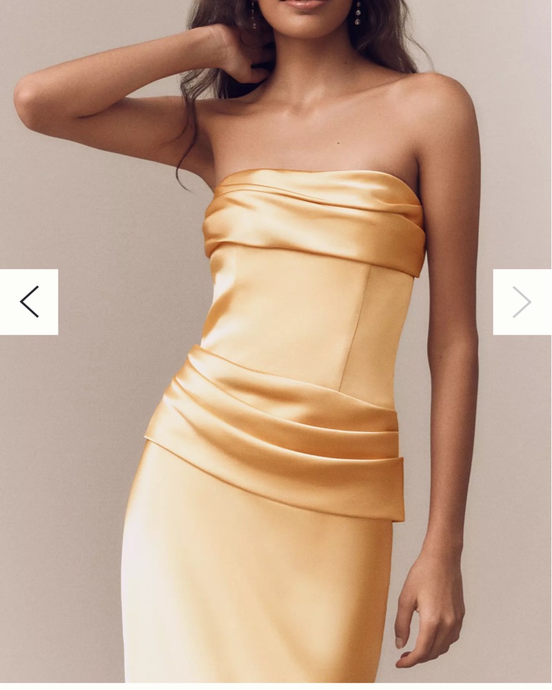 Perfect fall wedding guest dress! Size XS. please be very careful because of the material. Price includes dry cleaning fee. I am 5’2” and wore 4 inch heels and it dragged a little bit still.