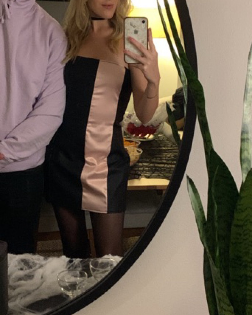 Worn once for a few hours! Great quality faux leather and pink satin. Custom made