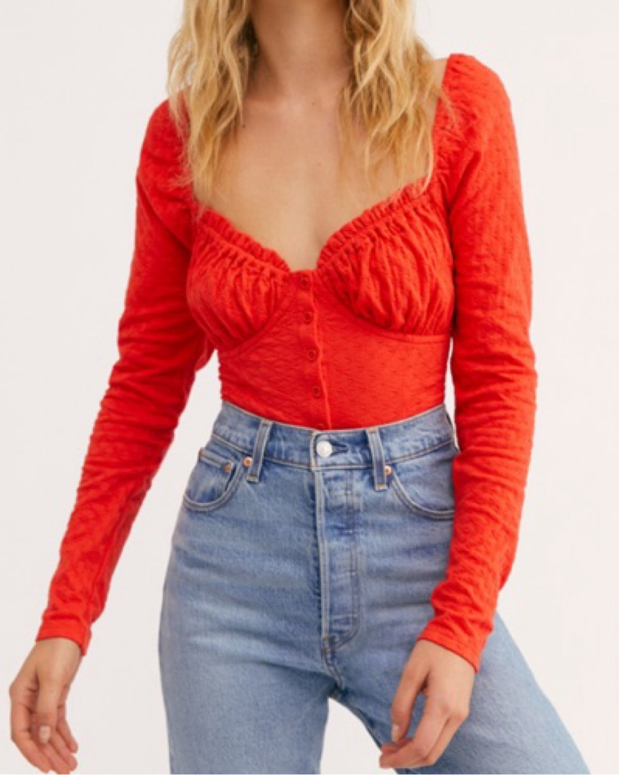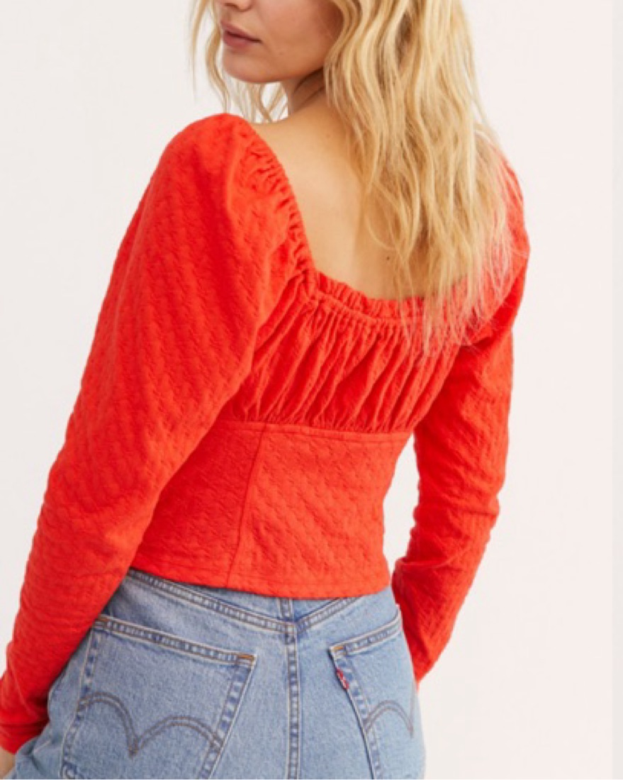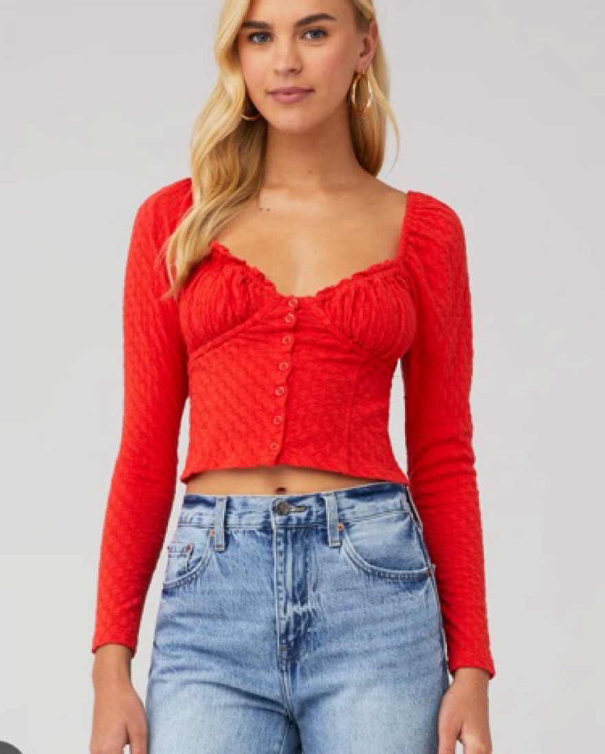 Free people ladybug long sleeve top in blood orange. Cotton stretchy material with button down front