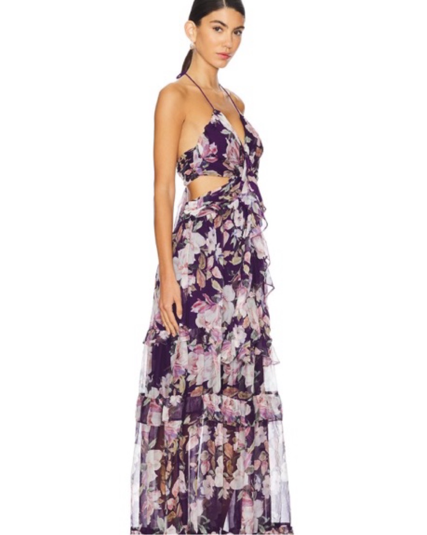 Beautiful ASTR the Label floral gown. Halter neck tie and back tie make this dress fit perfectly. Great for any season. Wore once to a black tie wedding and got so many compliments.