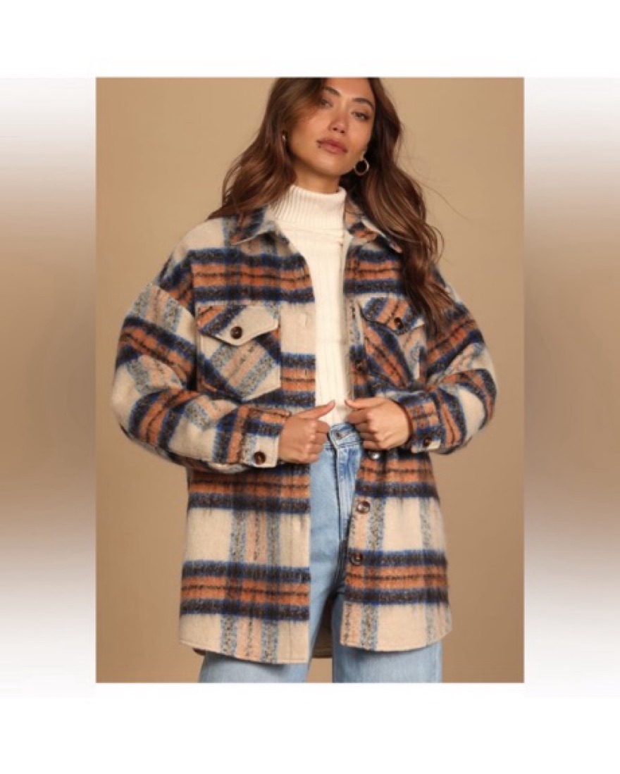 Lulus Exclusive! The answer to all chilly weather days is in the Lulus Cozy Callings Beige Multi Plaid Shacket! This fuzzy, wool-blend jacket features a fall-inspired plaid pattern throughout and shapes a collared neckline, drop shoulders, and long sleeves wi