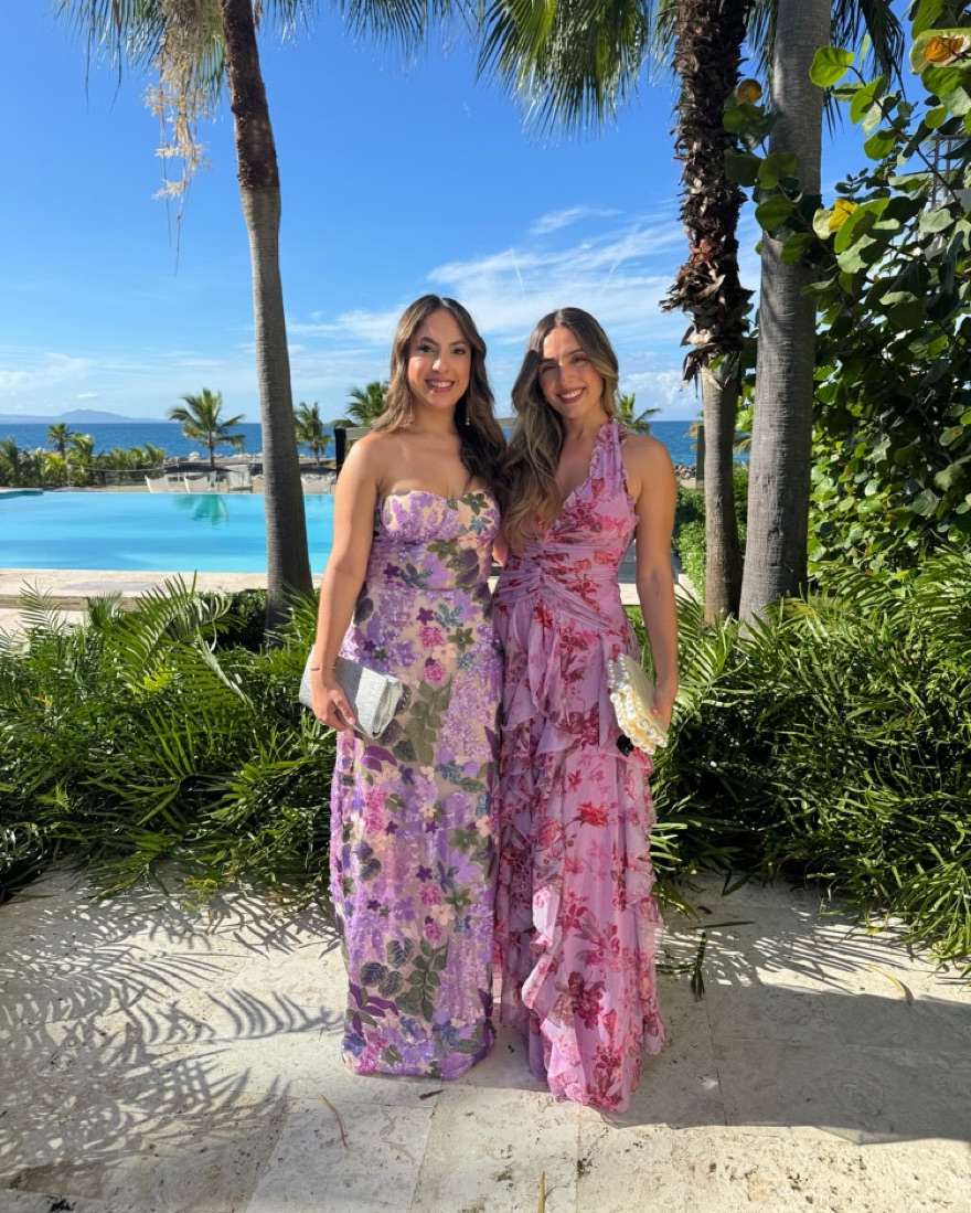 Beautiful dress with lots of stretch! Unhemmed so it was a bit long on me — still had about an inch dragging on the ground while wearing 2 inch heels — but I just held it on one side when I walked or swung the side while dancing so it ultimately wasn’t a big issue.
