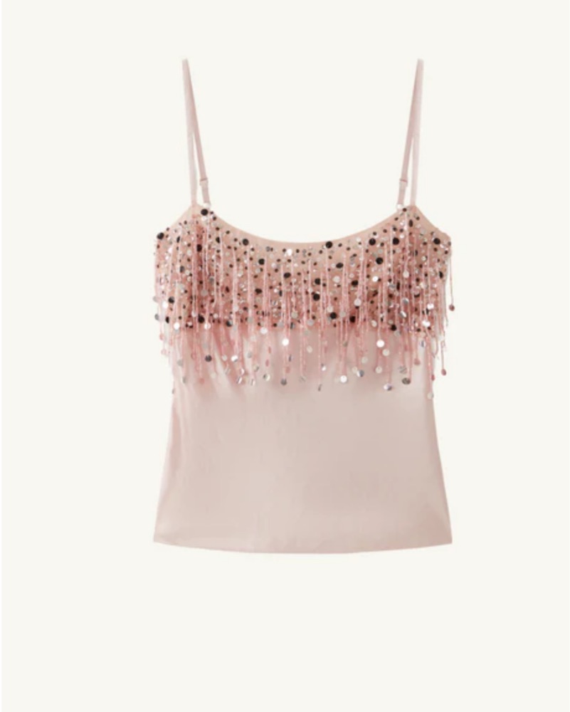 asta resort yasmin hand beaded pink top by Asta Resort - Pickle
