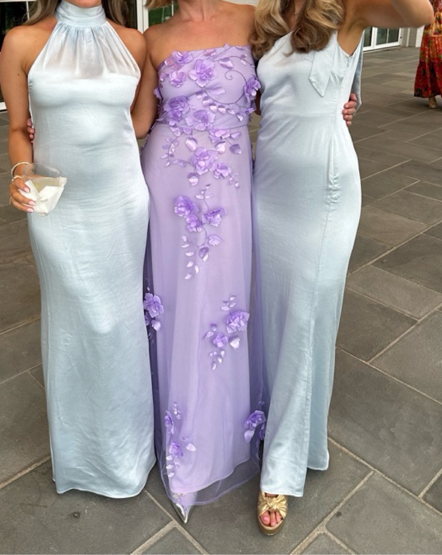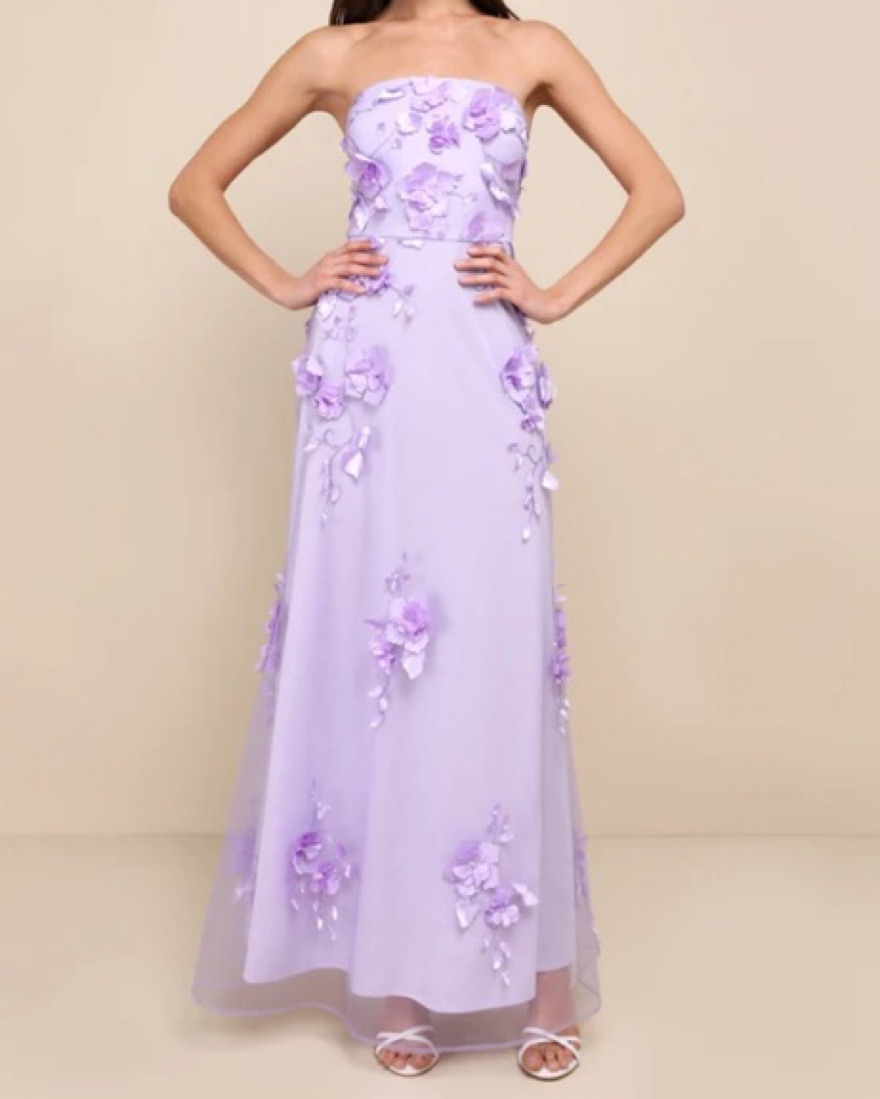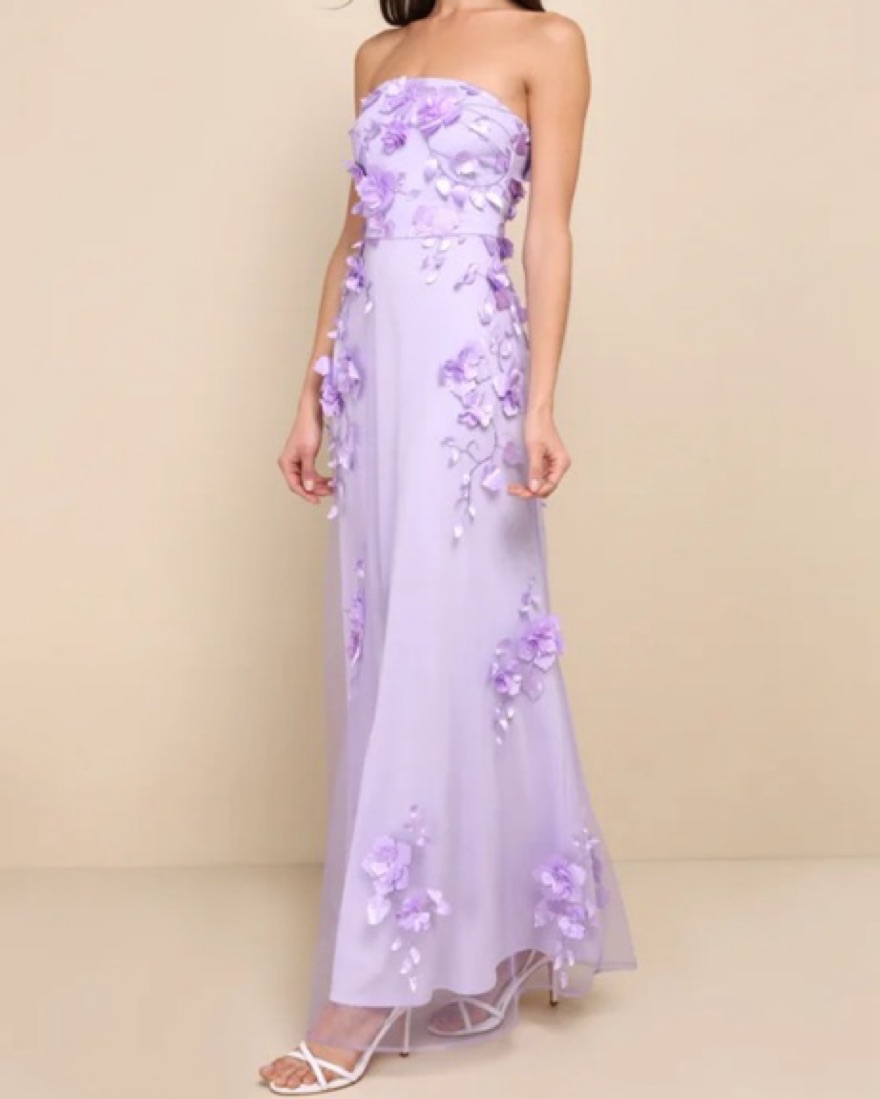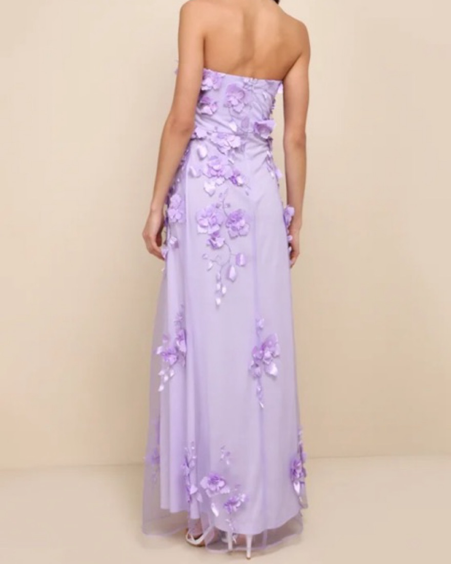 Size Large altered into a Medium. Lulu’s Remarkable Refinement Lavender Floral Strapless Maxi Dress