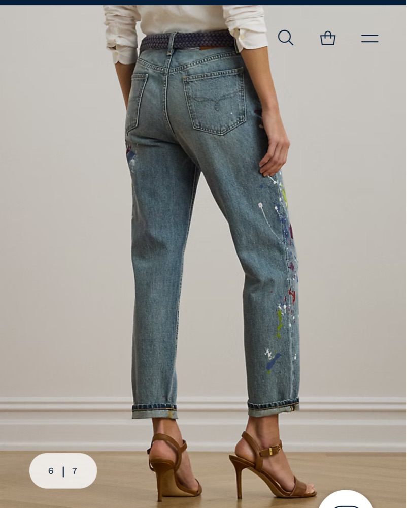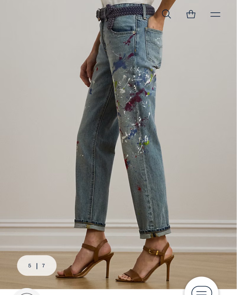 Lauren Ralph Lauren Splatter Jeans Boyfriend Tapered Ankle Style - Womens Size 4 Petite