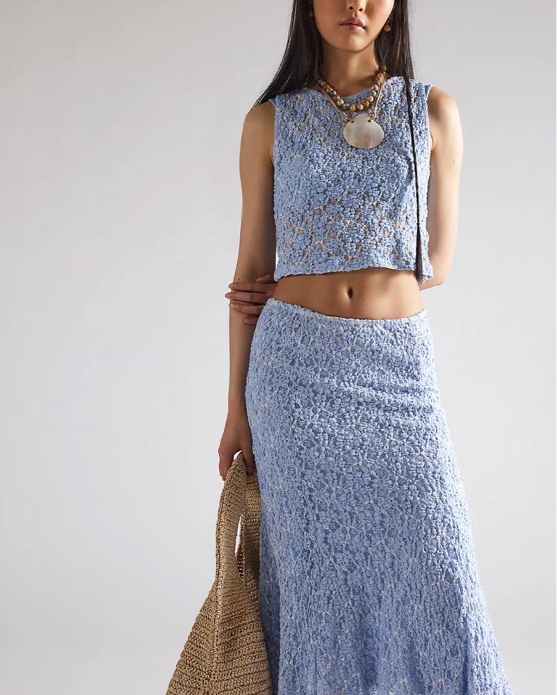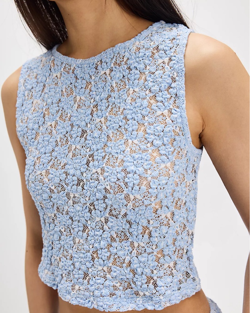 Felt like Cinderella! BEAUTIFUL baby blue lace set from FP. Size small, true to size. Got SO many compliments on this. So stunning would wear it so many times over again. I wore a lace bralette under, it was perf. PERFECT CONDITION, clean.