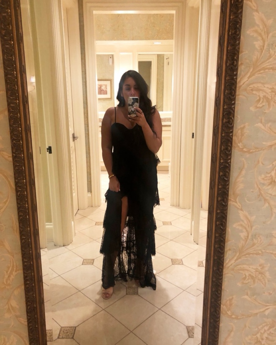 Beautiful lace gown perfect for a black tie wedding or formal event. Adjustable shoulder straps, padded underwire cups and tiered lace fabric. Hidden back zipper closure, and fully lined. Only worn once!