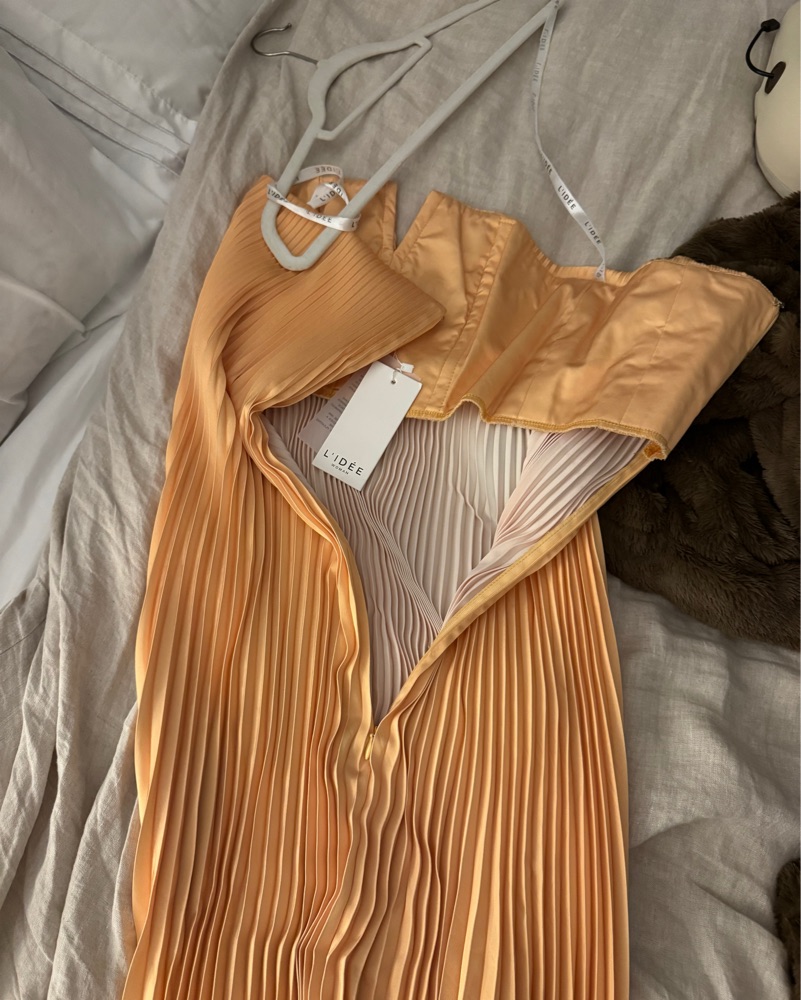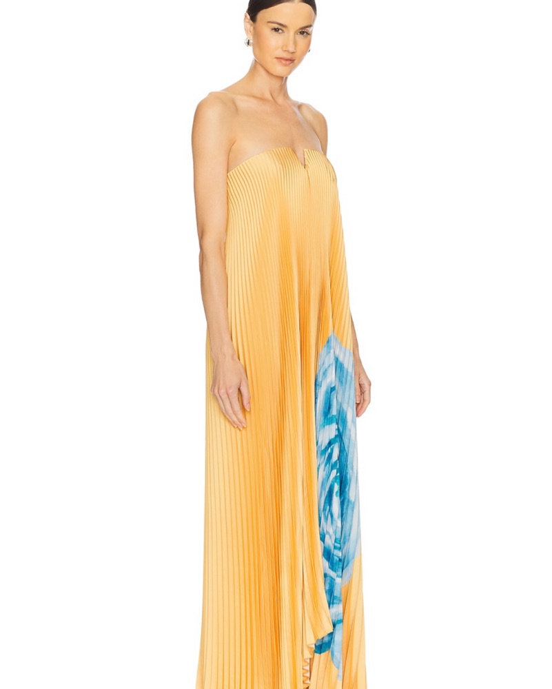 Gorgeous yellow and blue draped black tie dress, floor length. Flattering corset style around bust. Sold out online. Brand new, not worn yet.