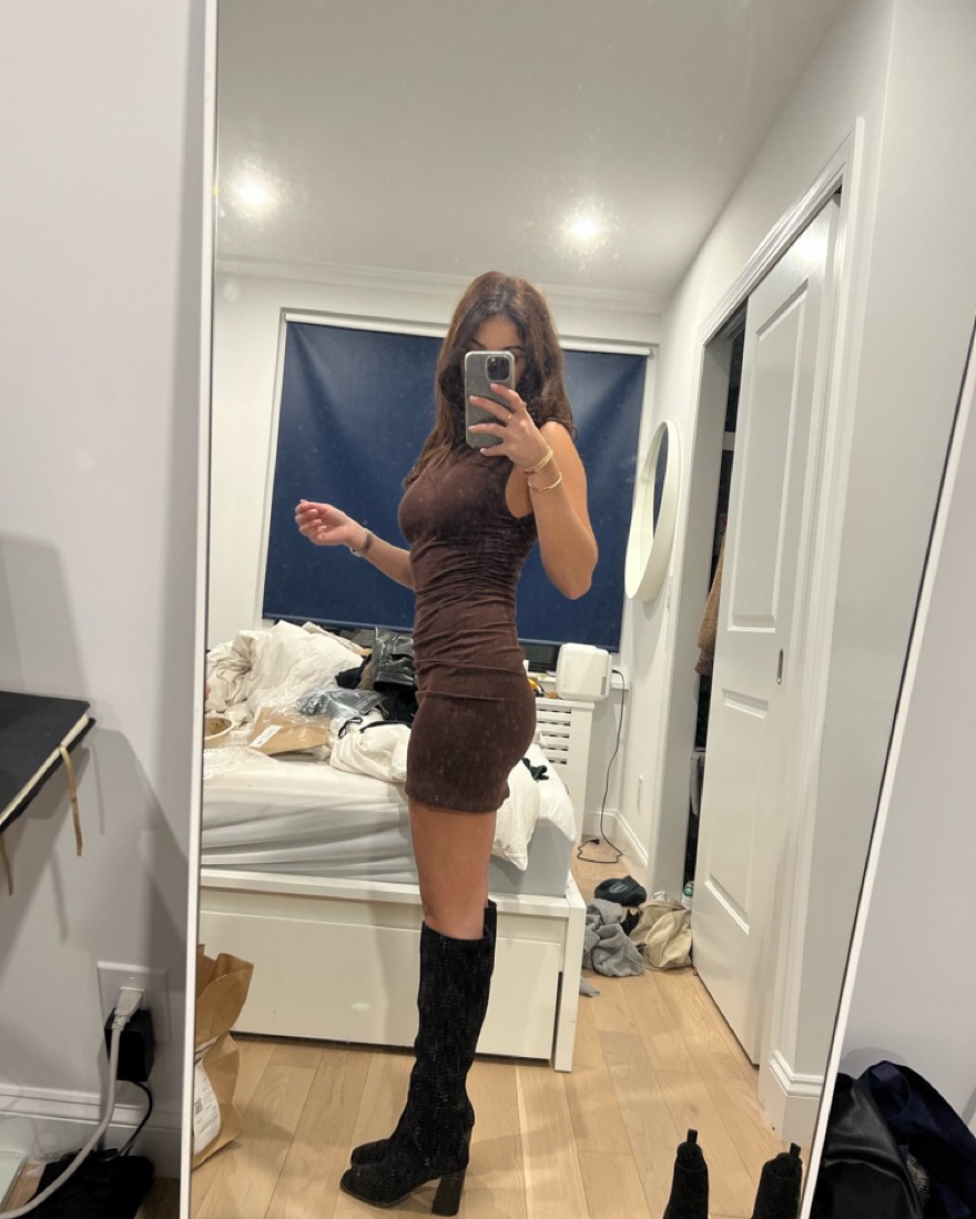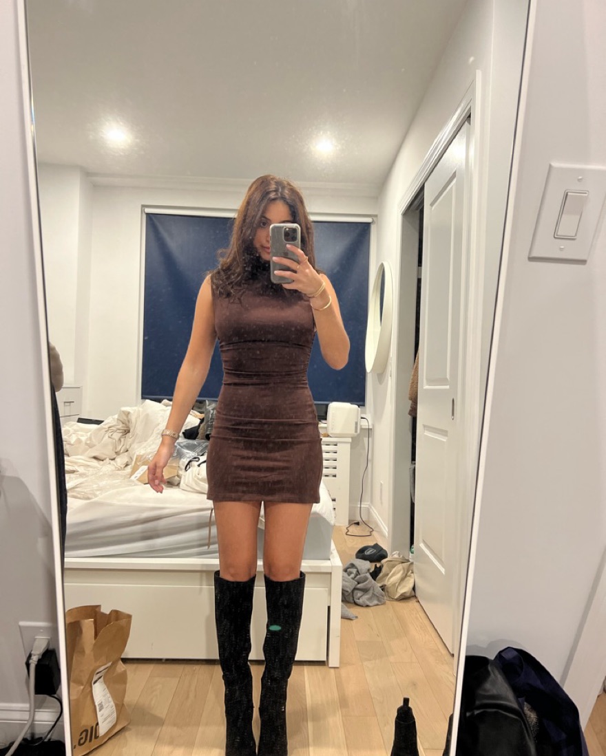 Brown reformation high neck mini dress. Excellent condition - can dress up or down
