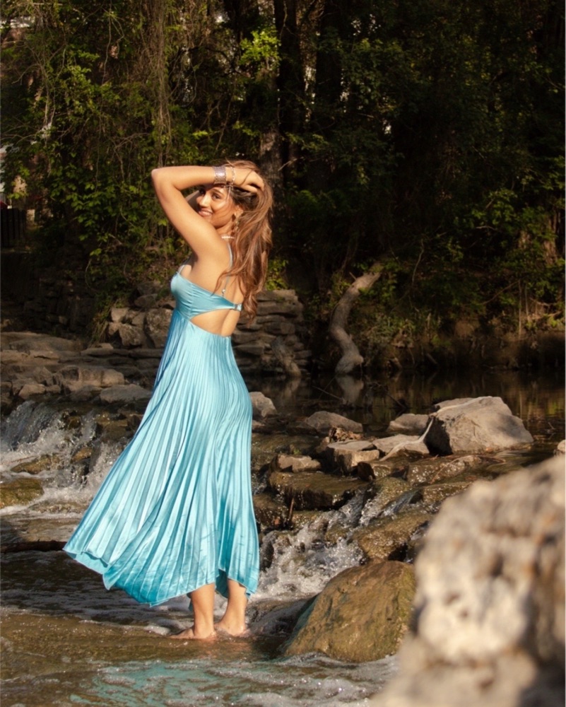 Green Drop Waist Pleated Gown