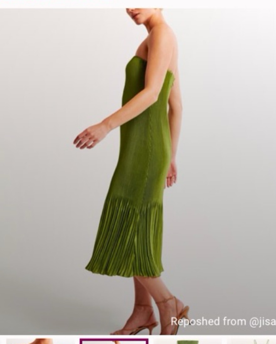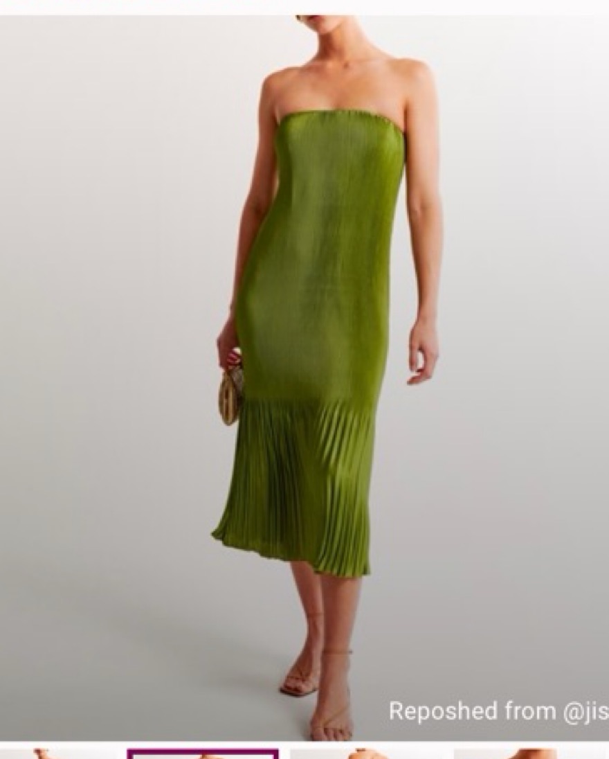 Pleated Green Midi Dress