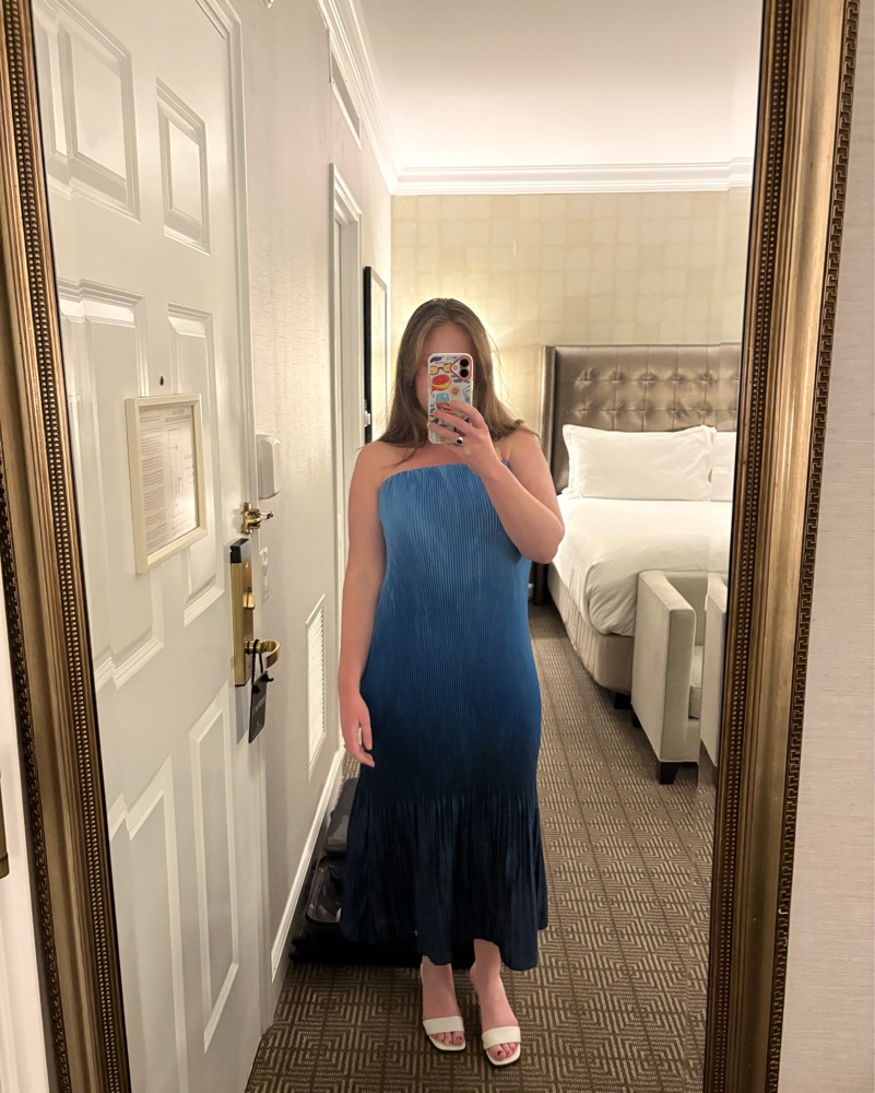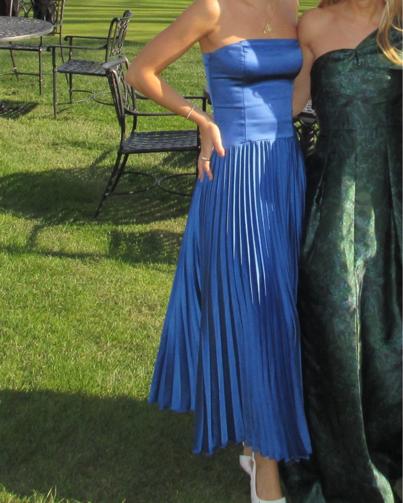 Elegant Blue Pleated Dress