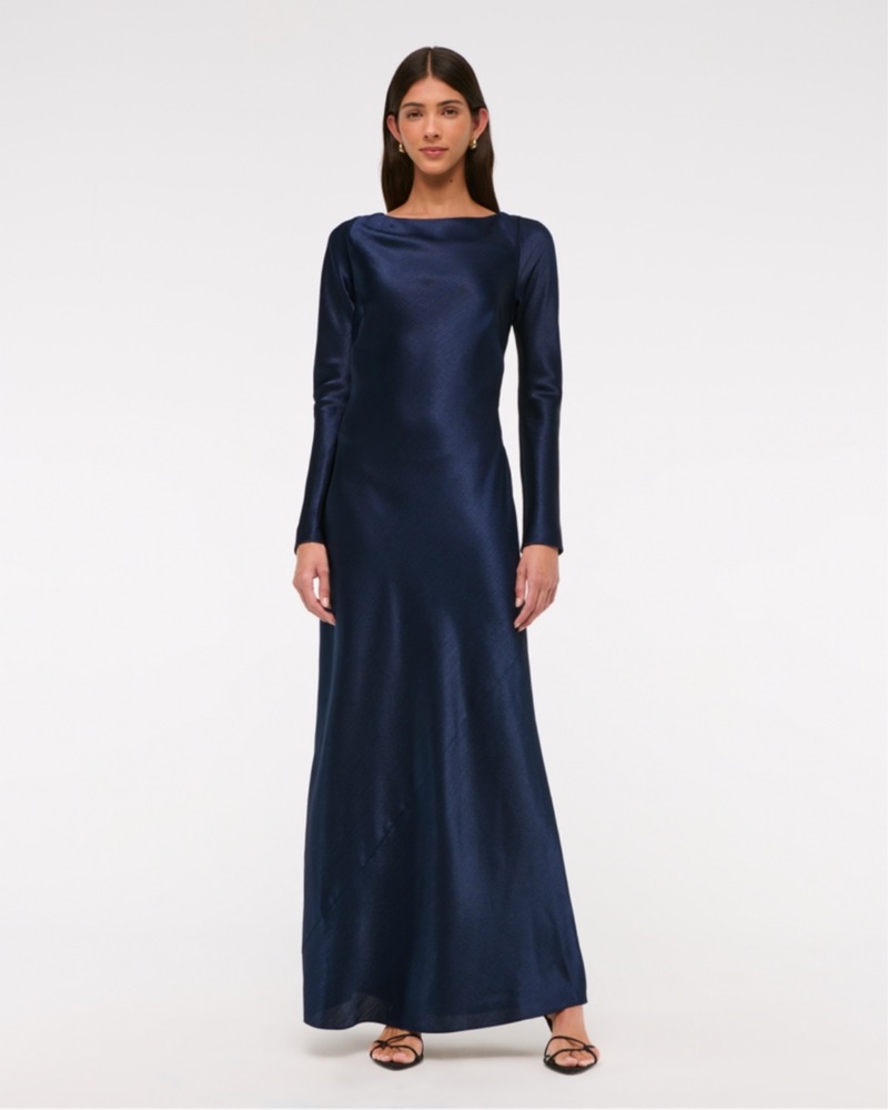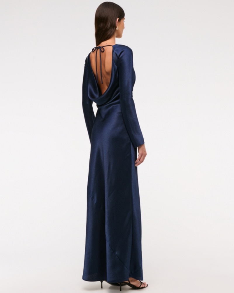 Long-Sleeve Cowl Back Maxi Dress
