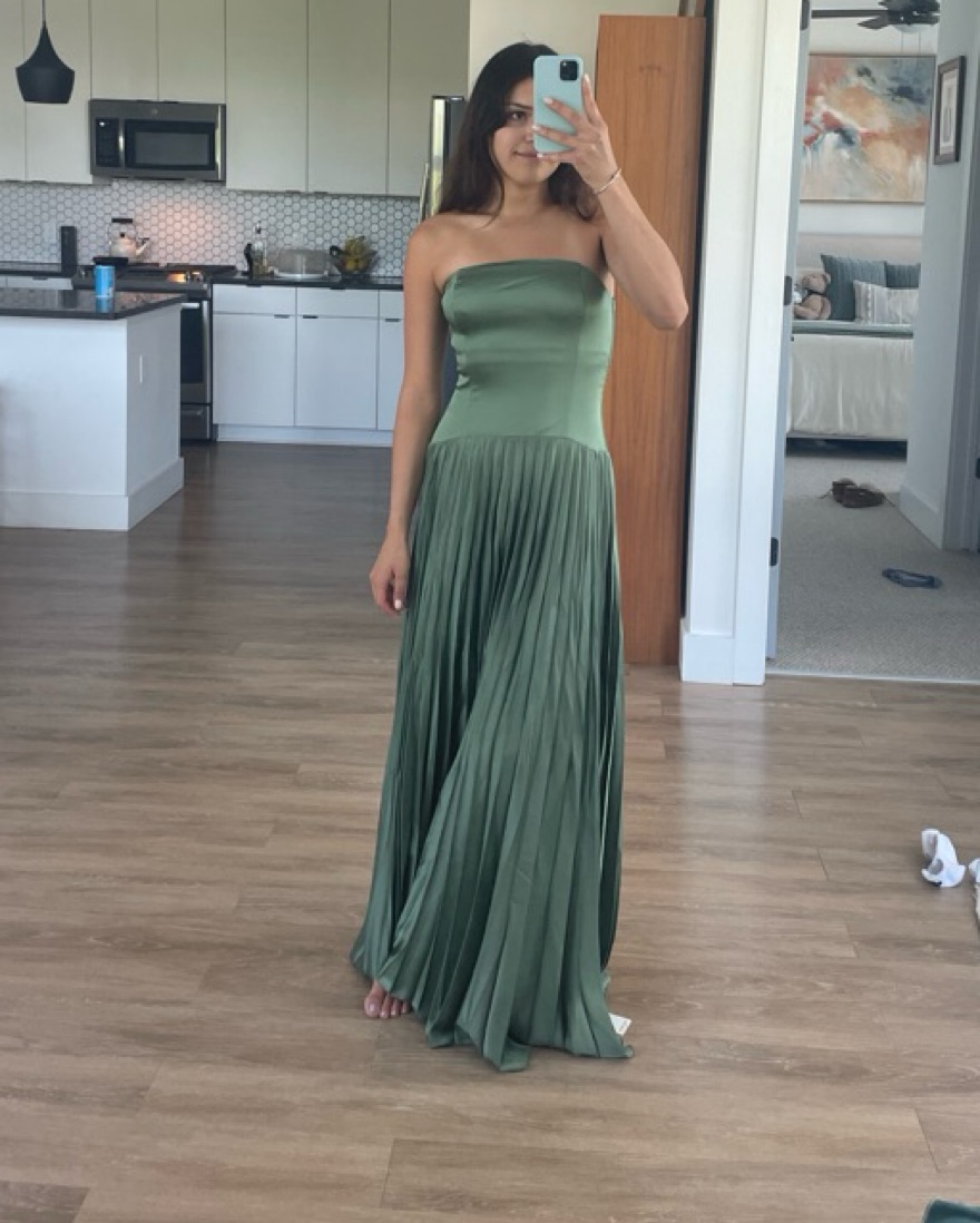 Green Drop Waist Pleated Gown