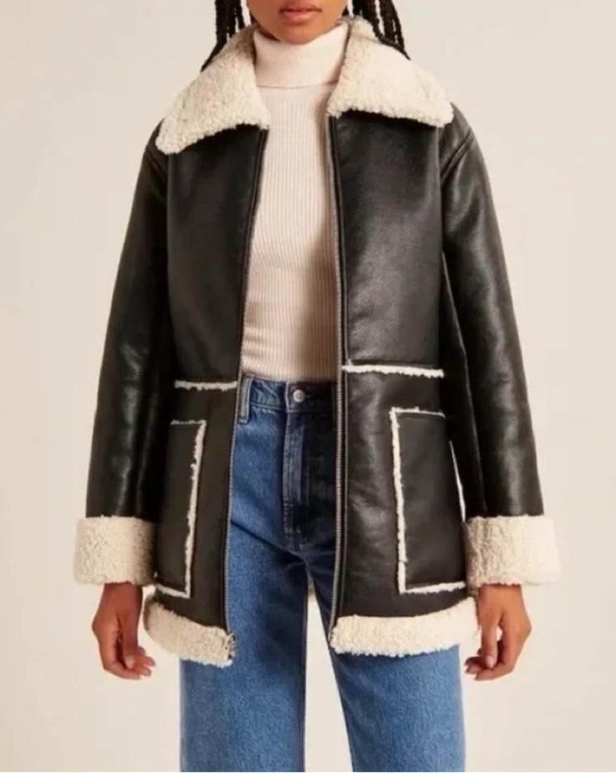 A&F Faux Leather Sherpa Oversized Jacket