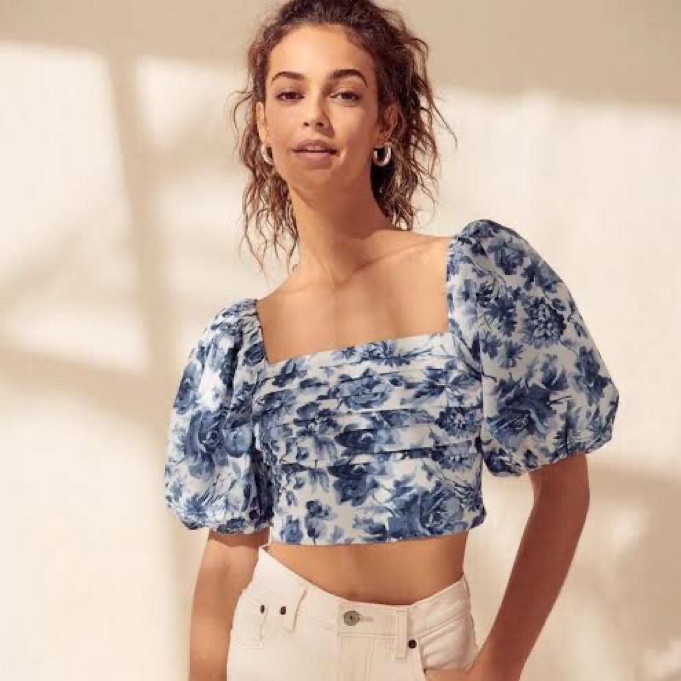 Floral Puff Sleeve Crop Top