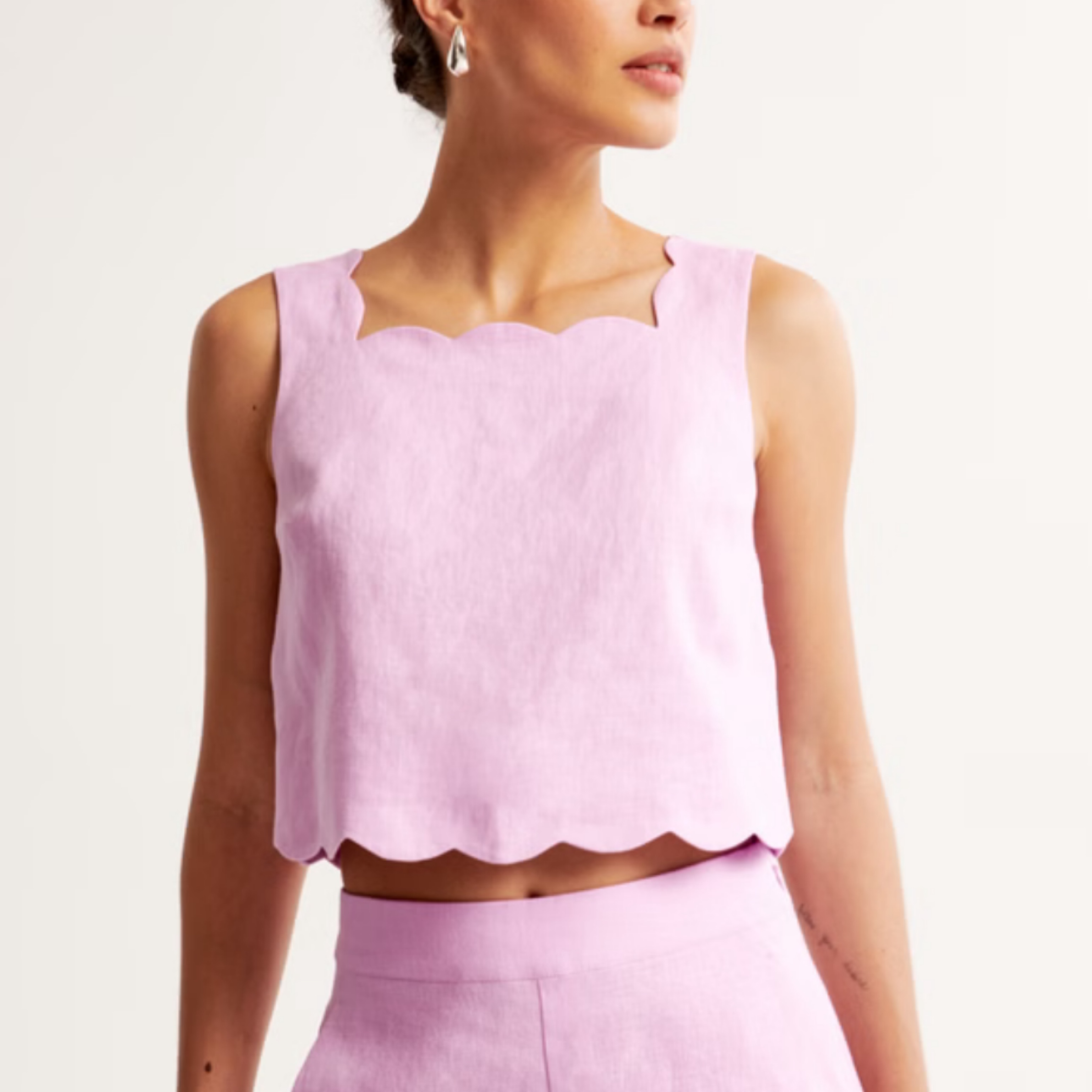 Linen Scallop-Hem Top