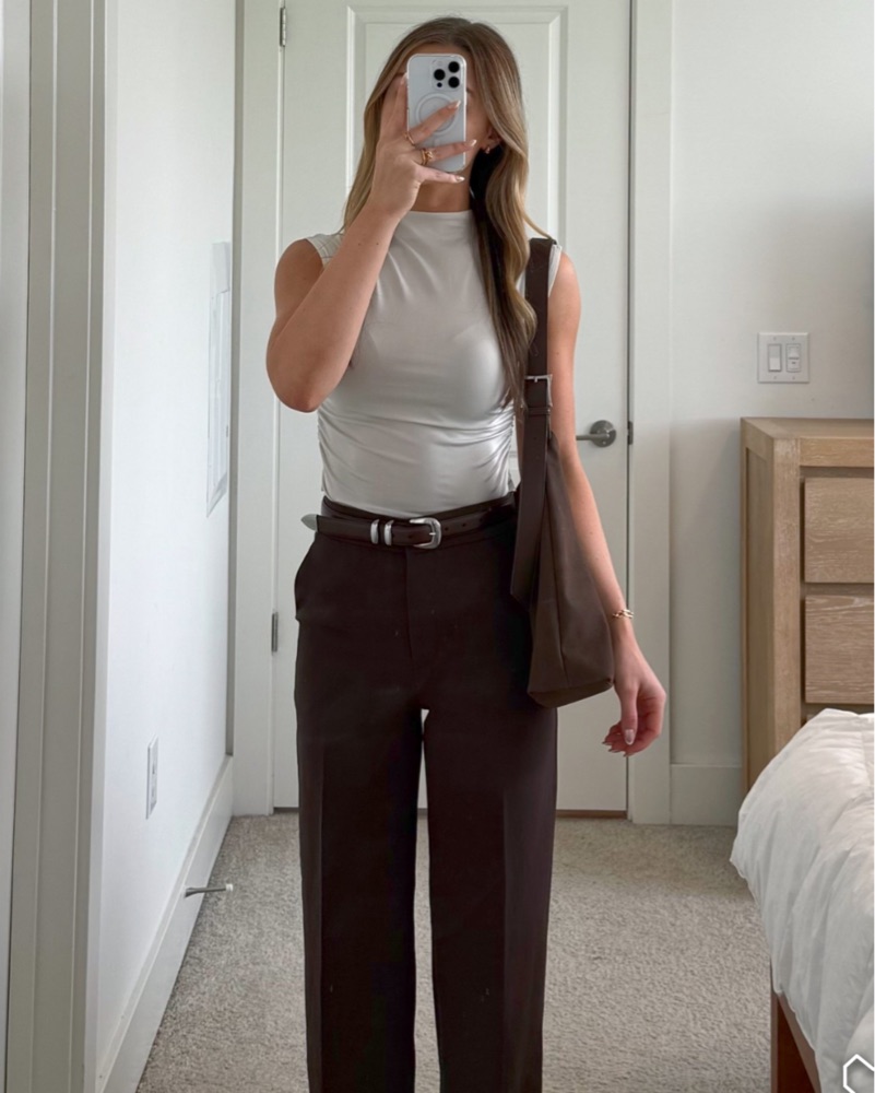 Brown Tuckable Draped Shell Top