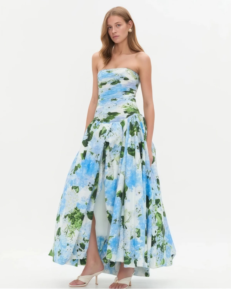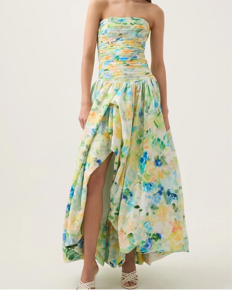 Aje Vibrant Floral Strapless Maxi Dress