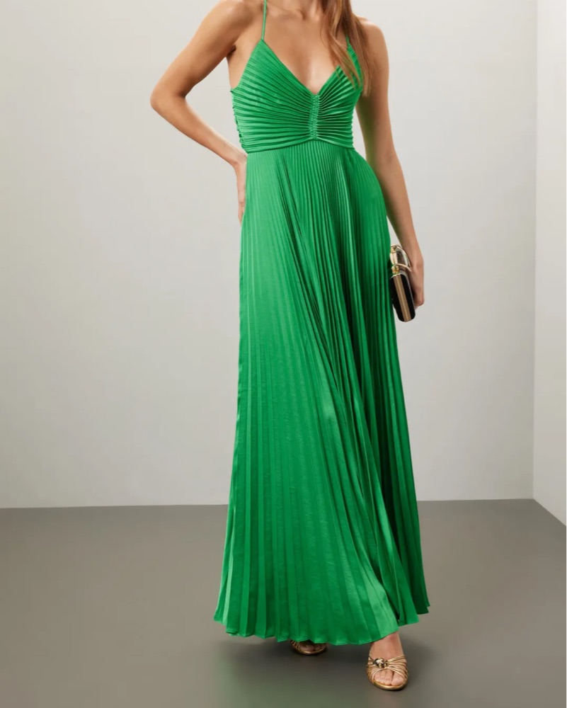 A.L.C. Moira Pleated Satin Maxi Dress