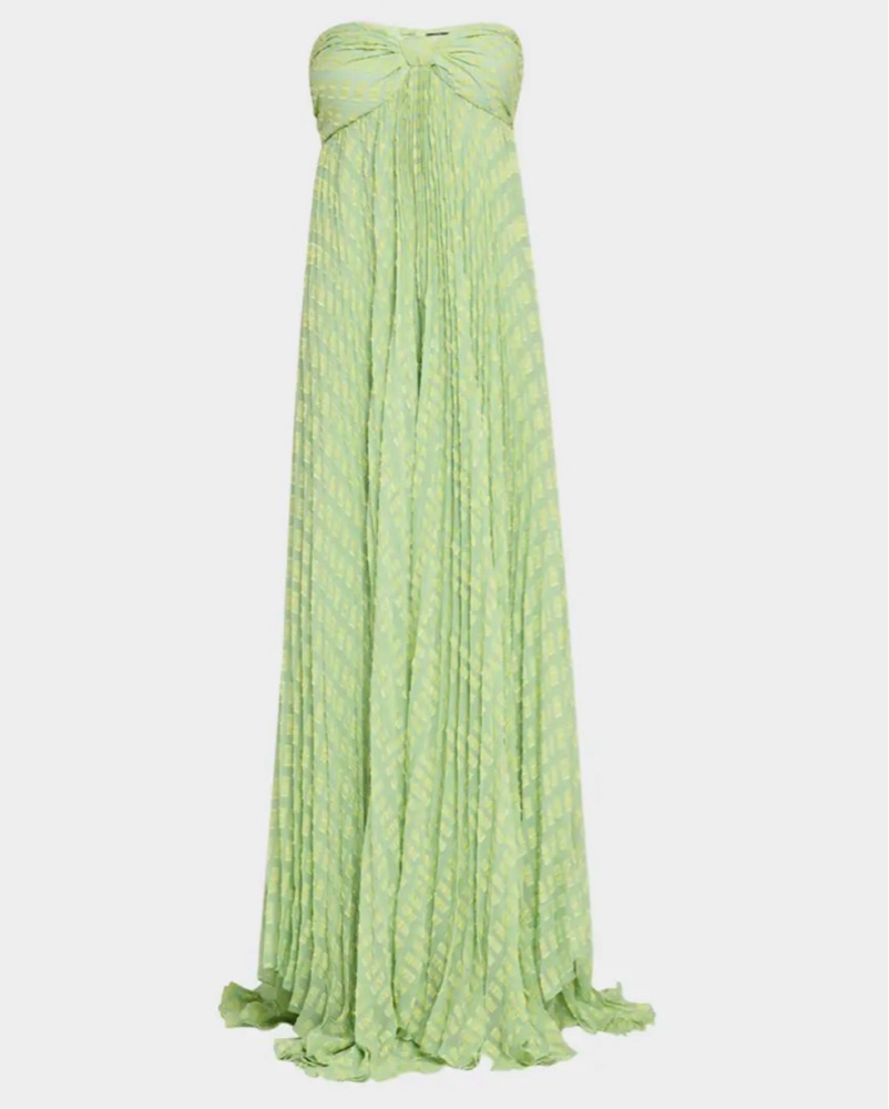 Elegant Pleated Mint Chiffon Gown