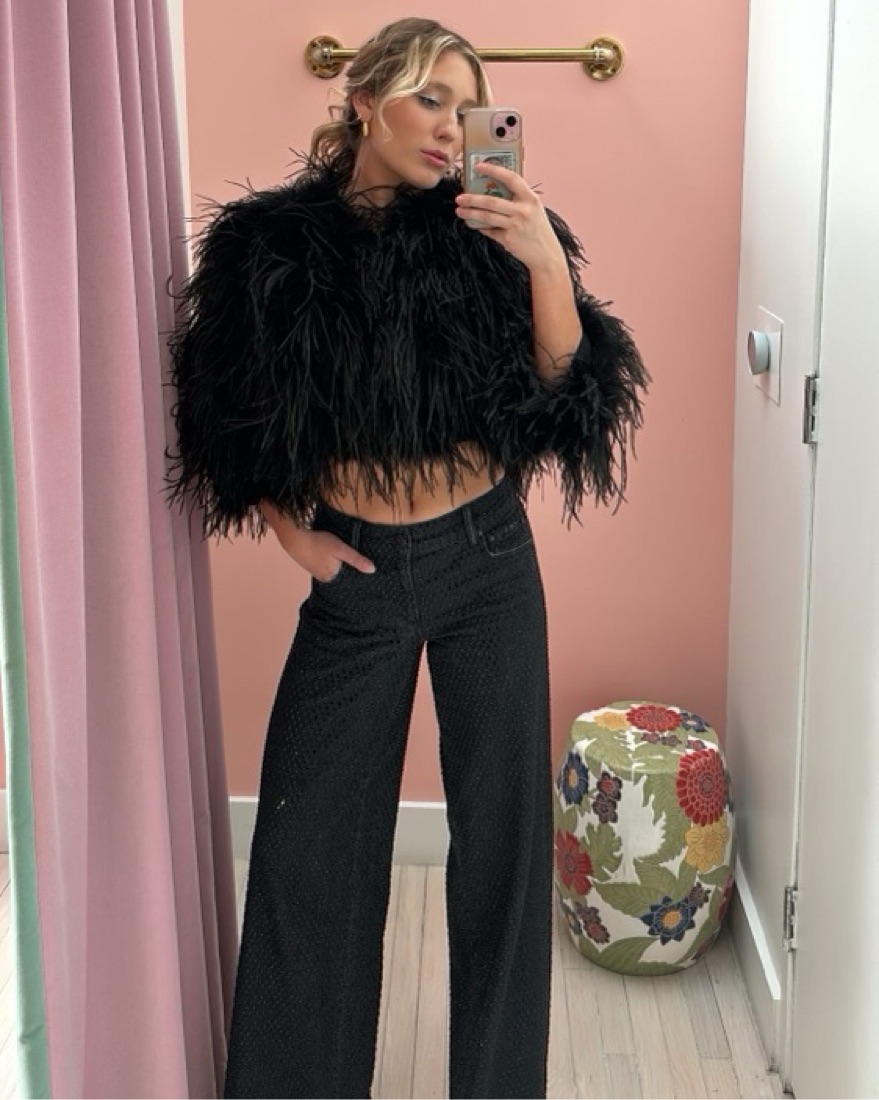 alice + olivia feather vest
