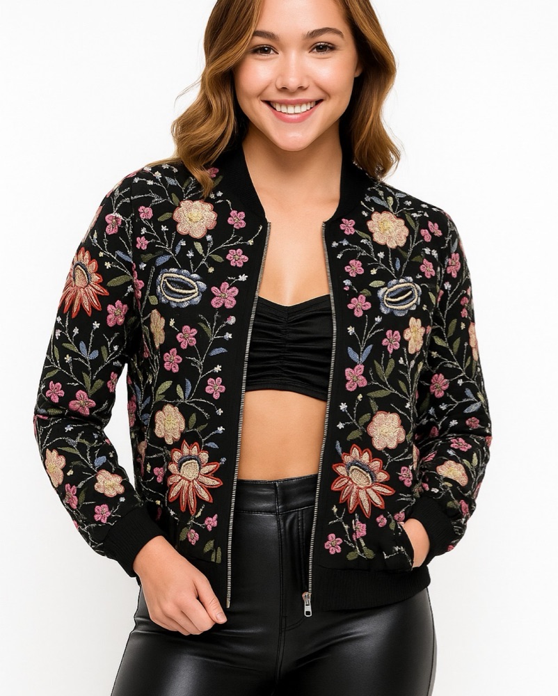 Stunning Floral Embroidered Bomber Jacket