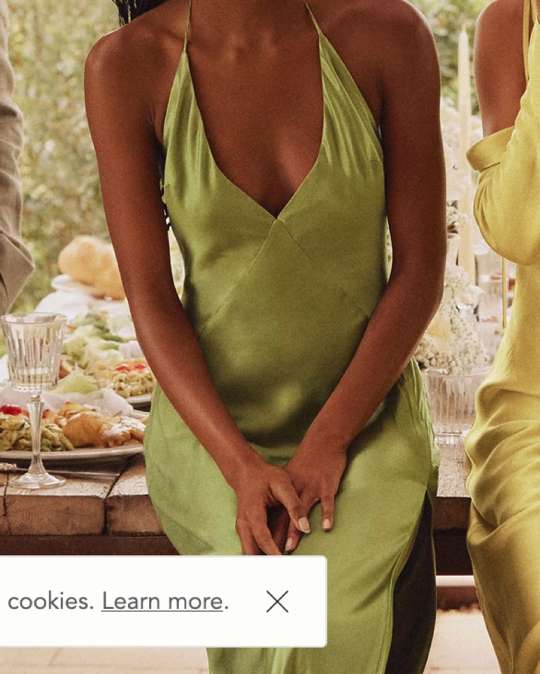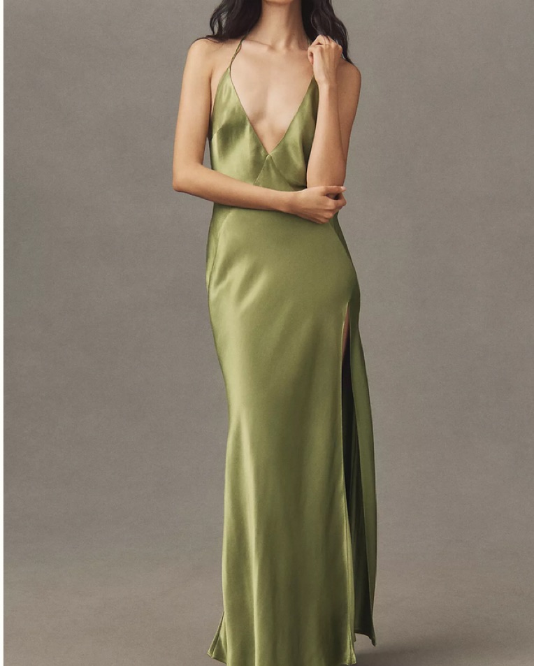 Open-Back Front-Slit Green Silky Dress