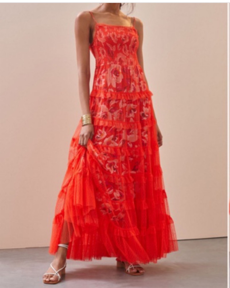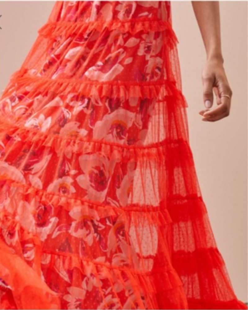Red Tiered tulle Maxi Dress