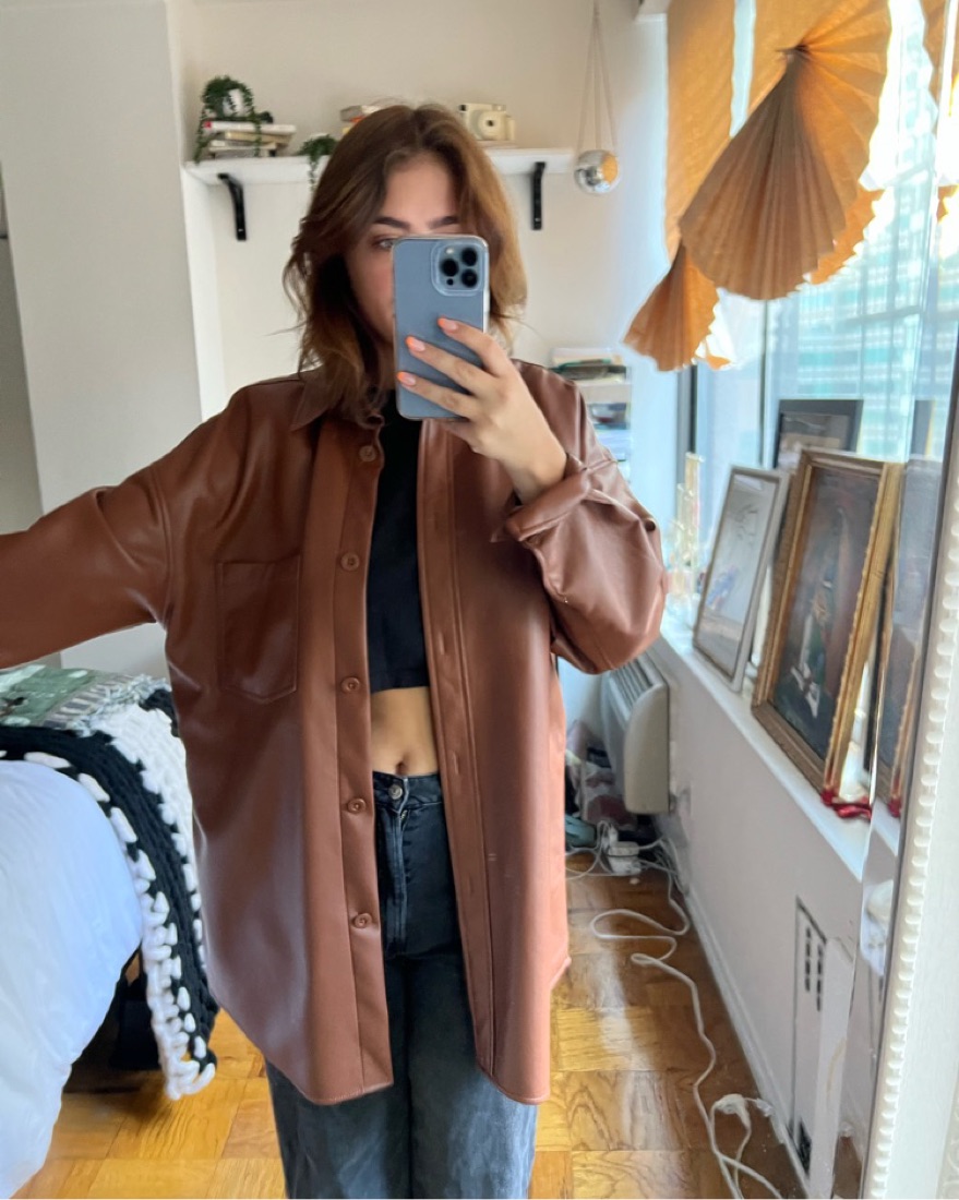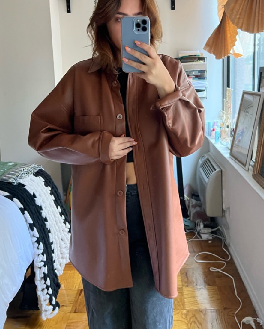 Brown Faux Leather Shirt Dress/Shacket