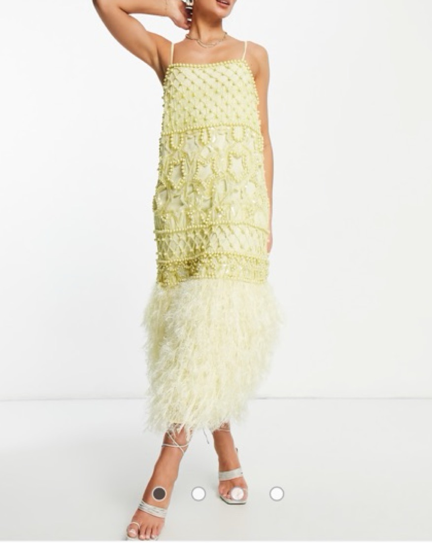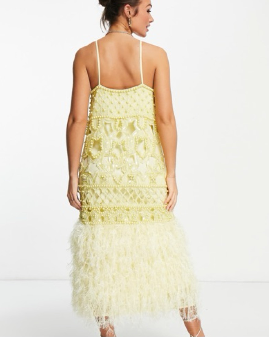 ASOS Yellow Embellished Feather Dress