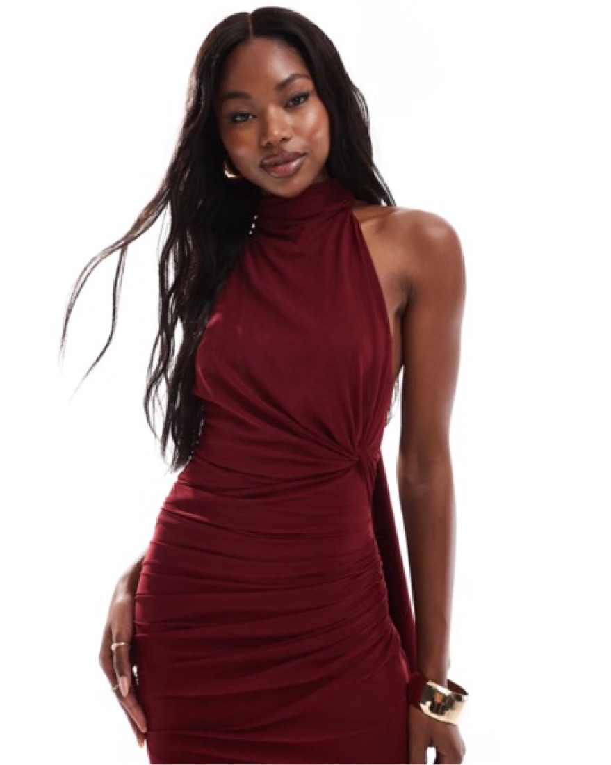 Asos Mesh Twist Halter Maxi Dress