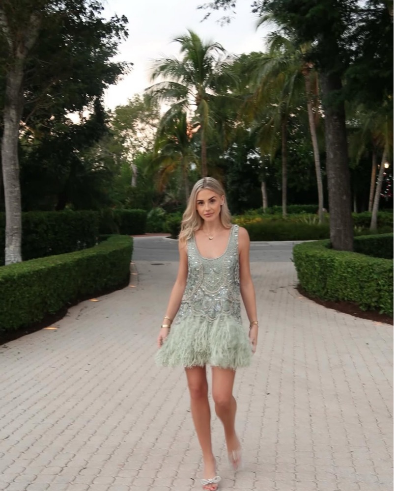 Embellished Mini Dress With faux Feather