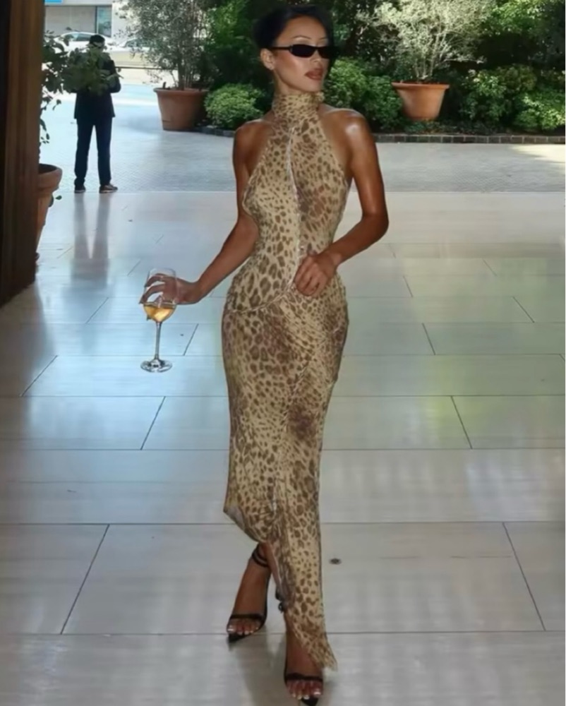 Senja Dress Leopard Print Halter Neck