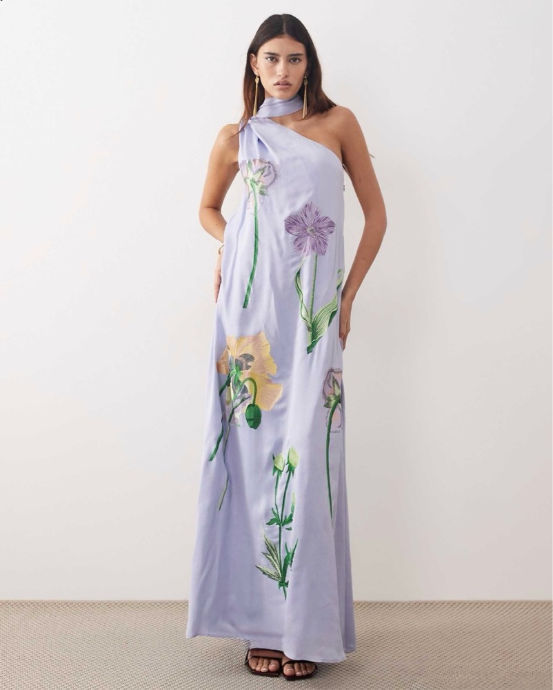 Floral Embroidered One Shoulder Gown