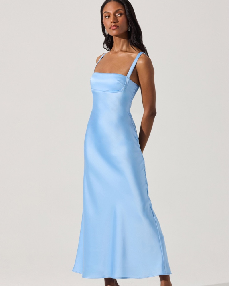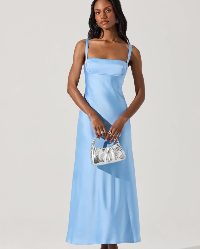 Blue Satin Midi Dress