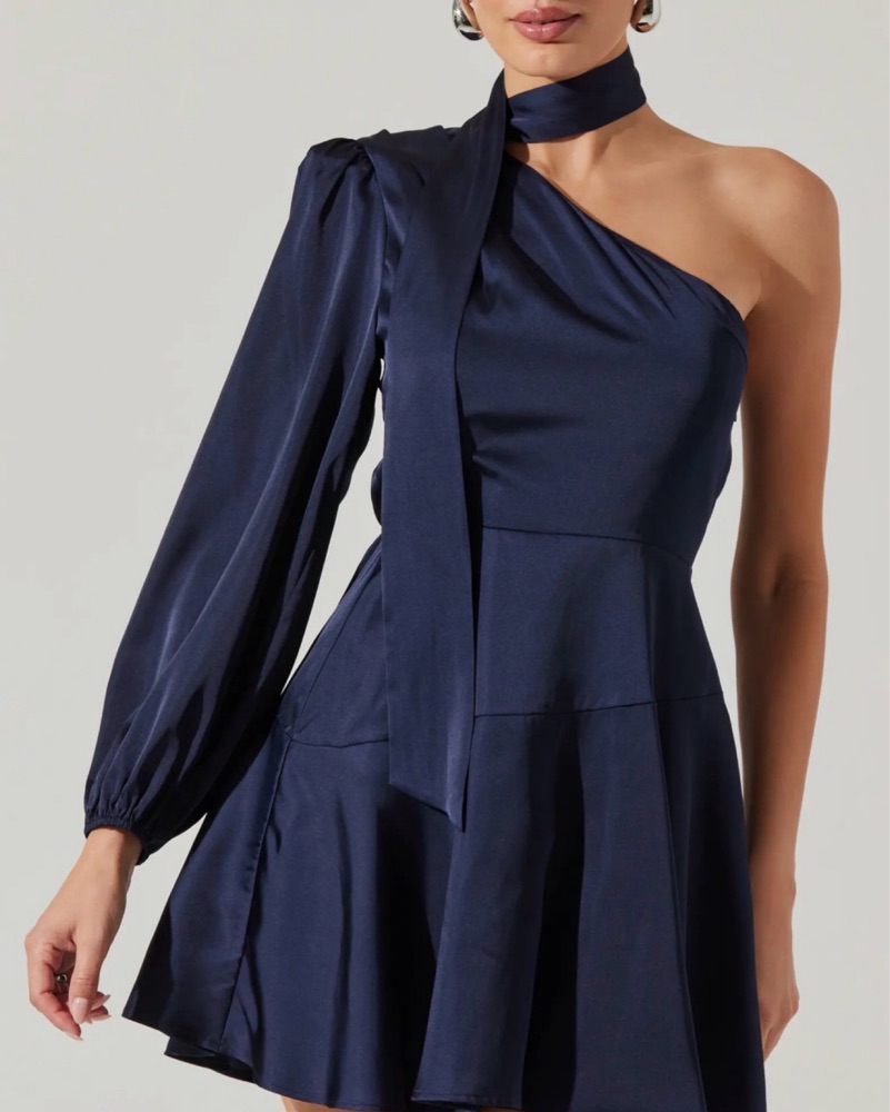 ASTR Satin Scarf One-Shoulder Minidress