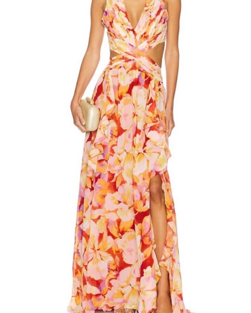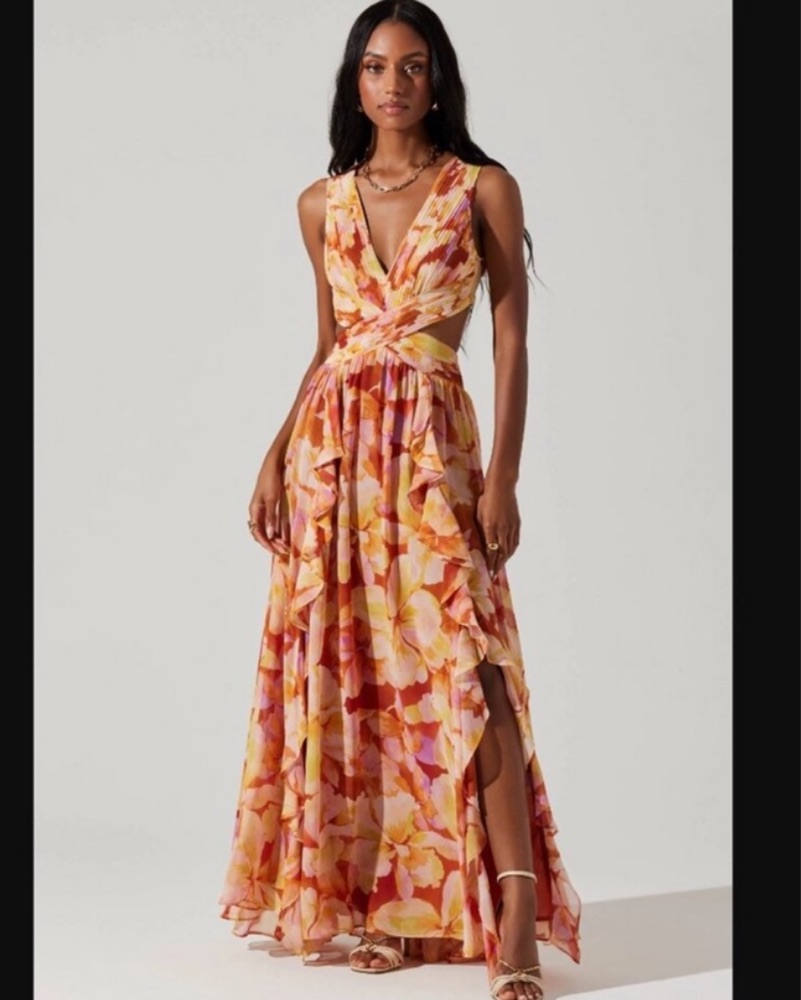 🍊 Astr the Label Ruffle Satin Maxi Dres